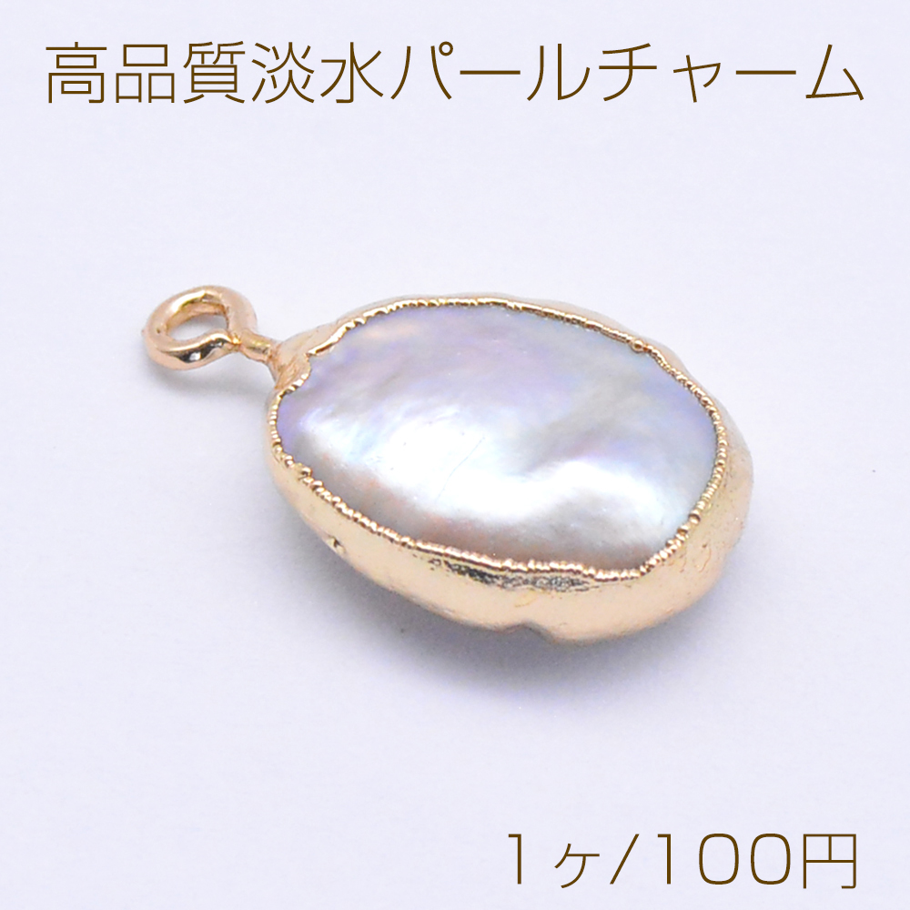 高品質淡水パールチャーム No.84 オーバル 1カン ゴールド/ライトパープル【1ヶ】