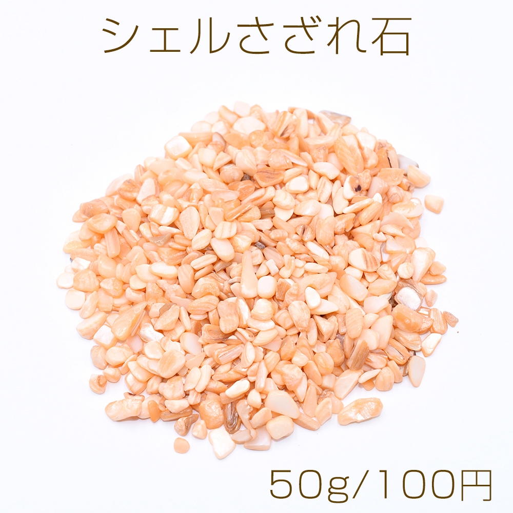 シェルさざれ石 染色シェル貝 穴なし オレンジ 5-7mm【50g】