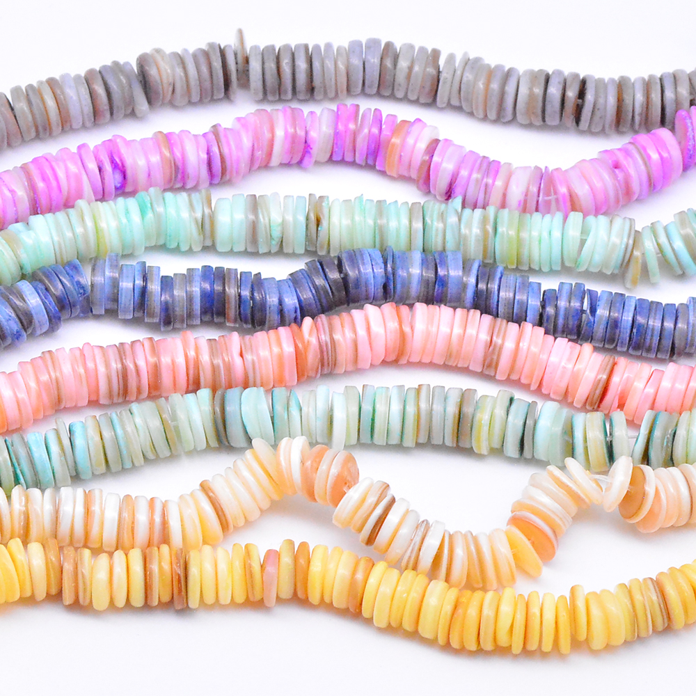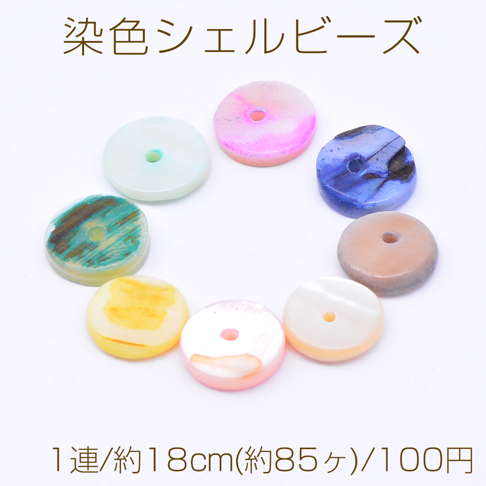 染色シェルビーズ フラットラウンド 9mm【1連/約18cm(約85ヶ)】