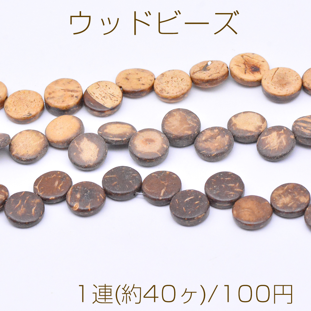 ウッドビーズ コイン型 3×10mm【1連(約40ヶ)】