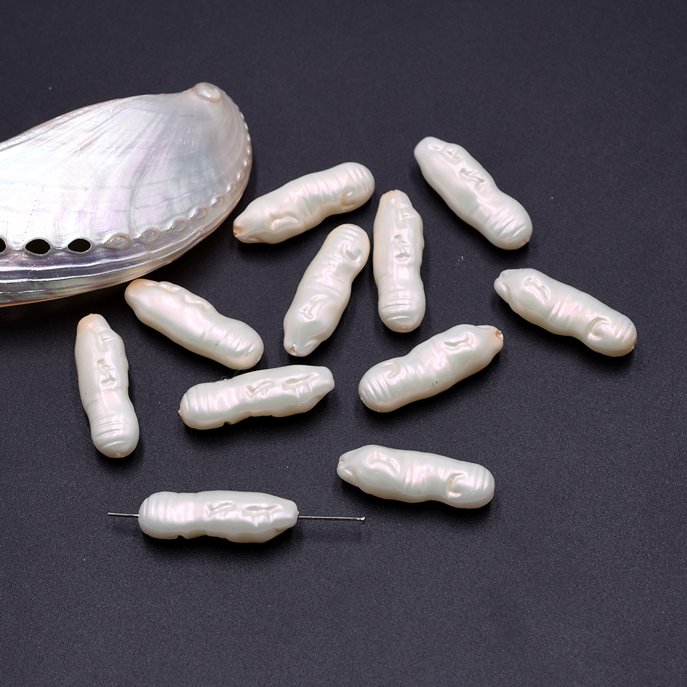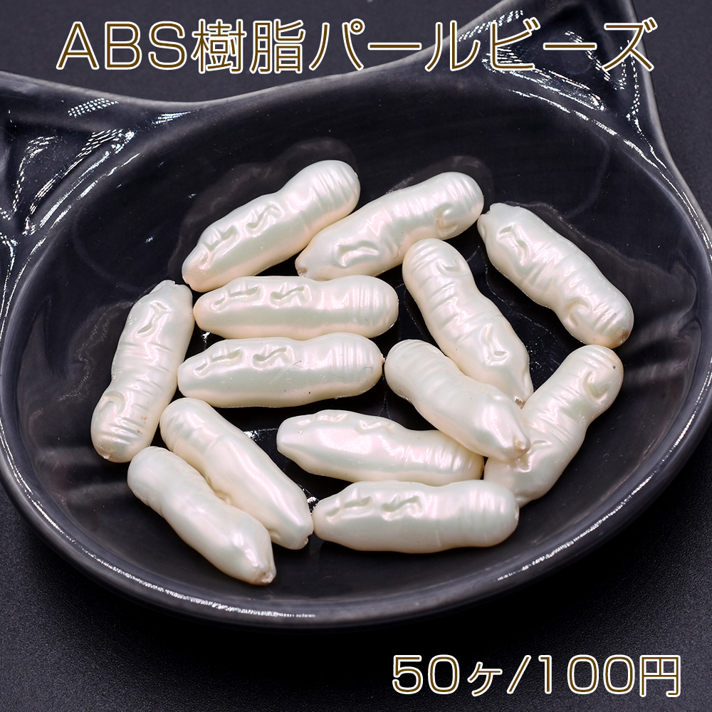 ロングパールビーズ 樹脂製 パールビーズ バロック調パールビーズ 不規則型 オーロラカラー加工 8×23mm ベージュ(50ヶ)