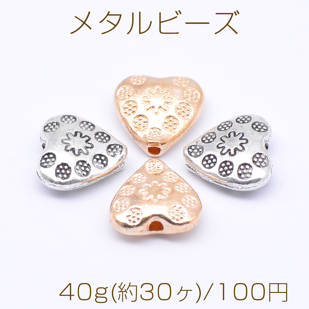 メタルビーズ ハート 花模様 10×11mm【40g(約30ヶ)】
