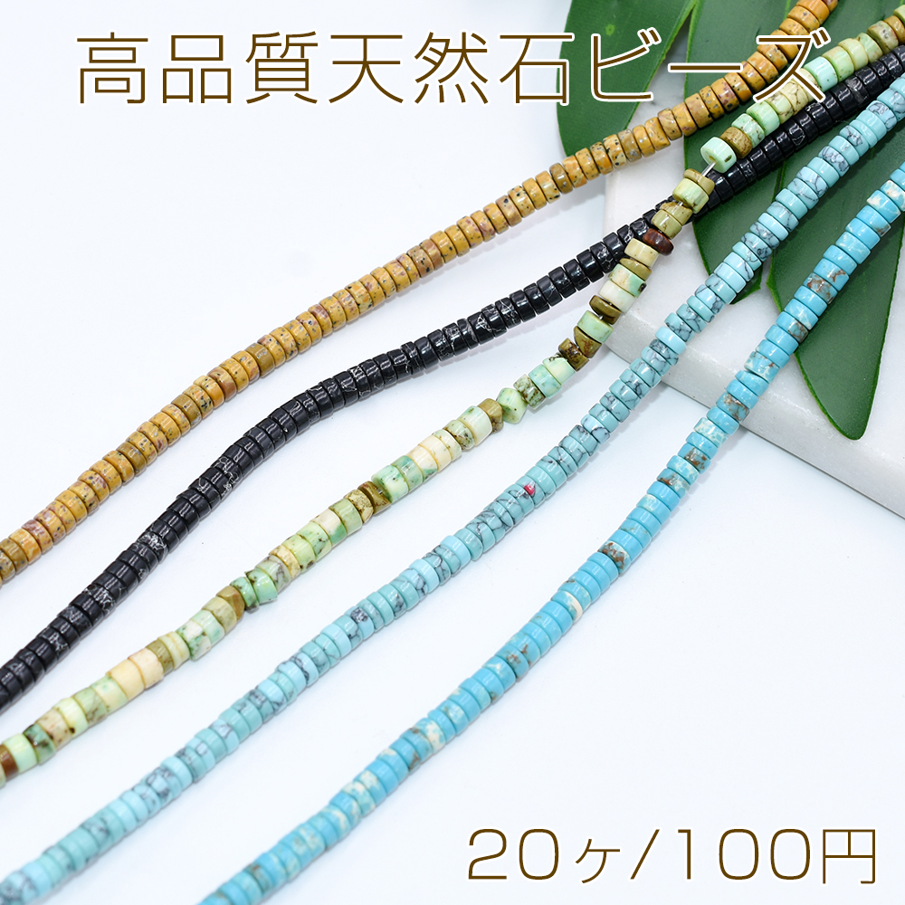 高品質天然石ビーズ ソロバン 2×4mm【20ヶ】