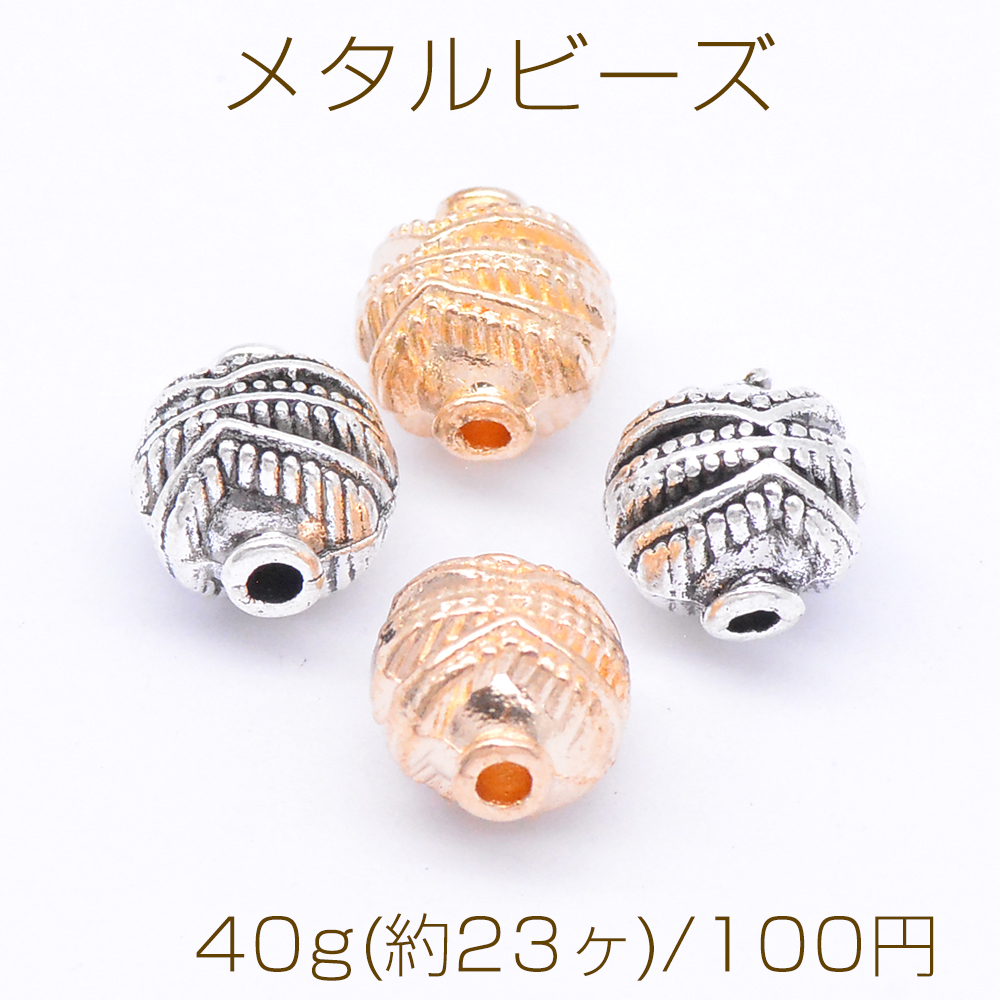 メタルビーズ 丸型 模様入り 9×9mm【40g(約23ヶ)】