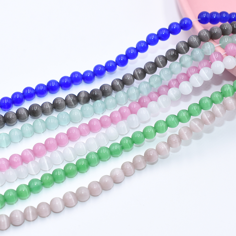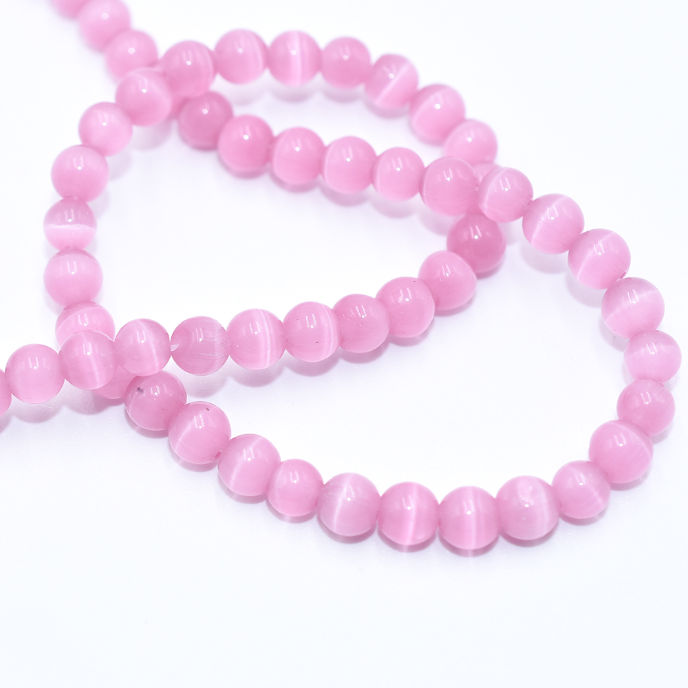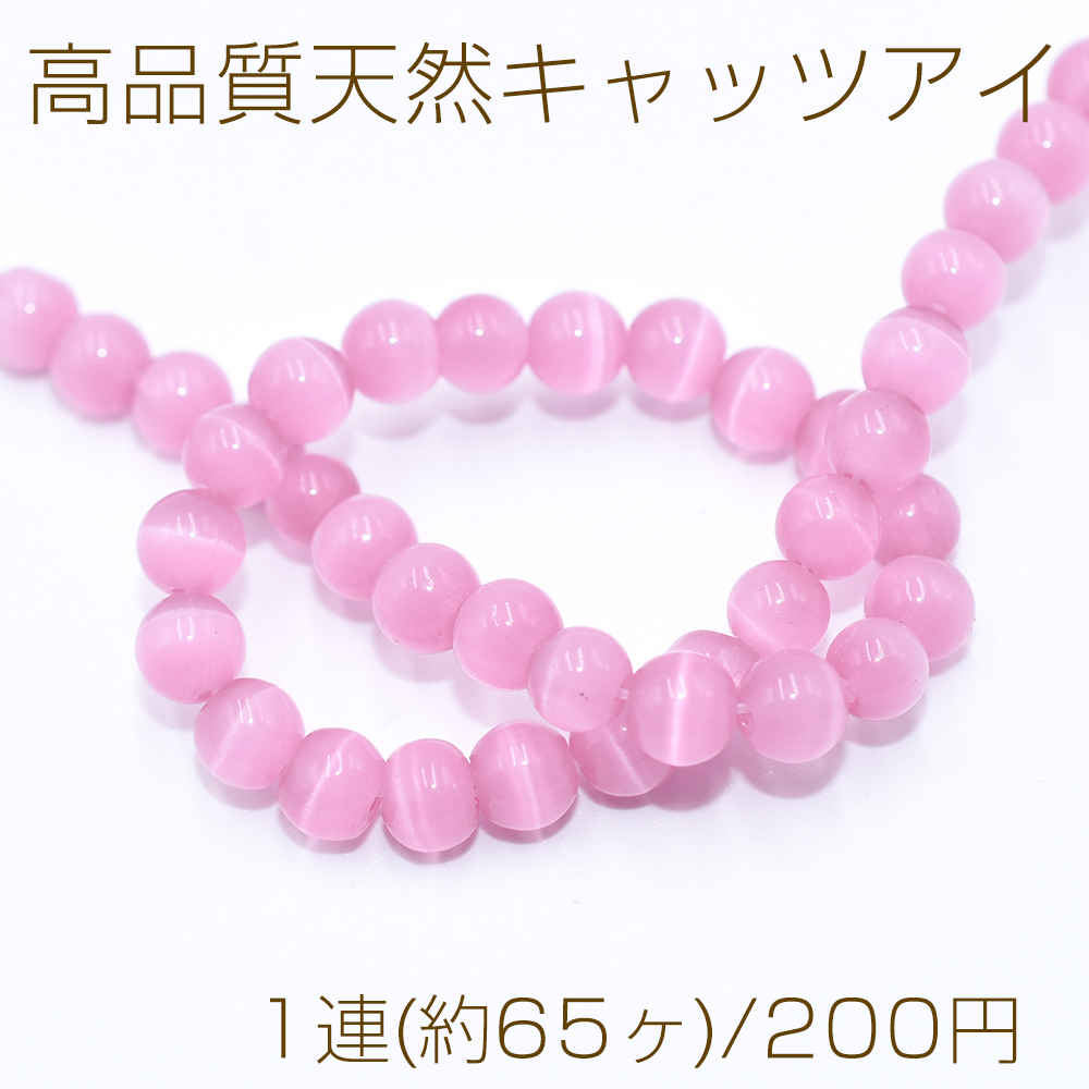 高品質天然キャッツアイ 丸玉 6mm ローズピンク【1連(約65ヶ)】