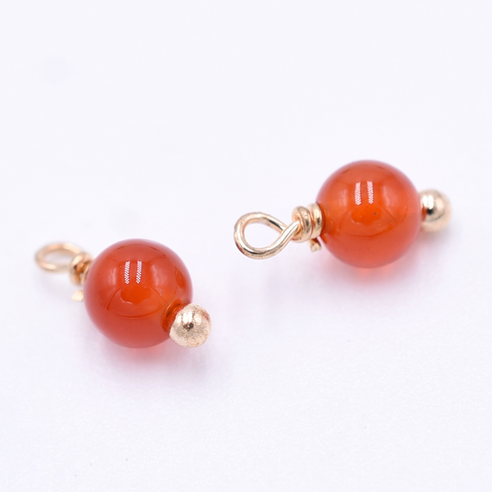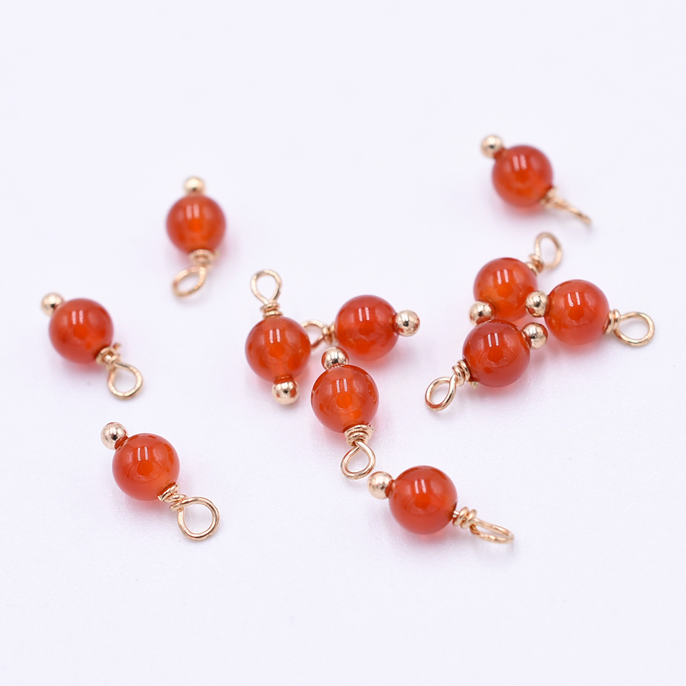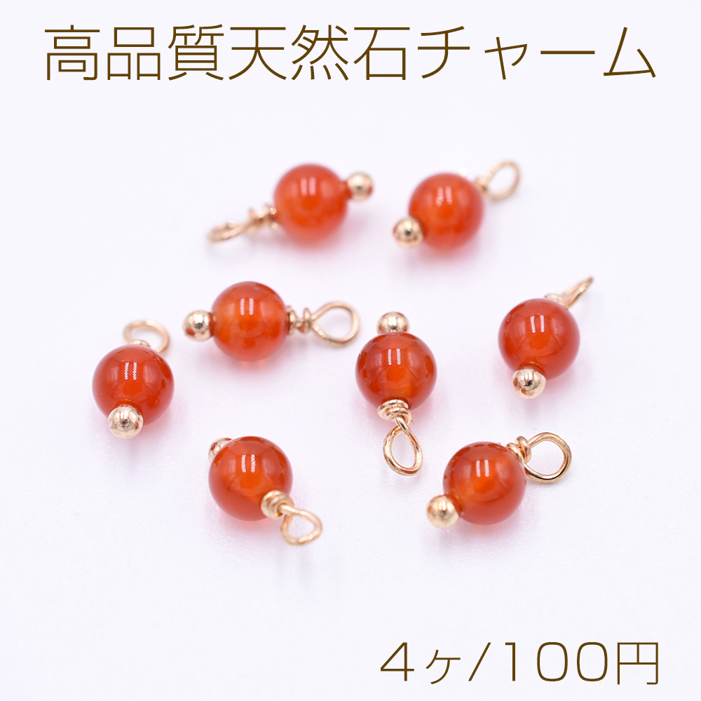 高品質天然石チャーム レッドアゲート 丸玉 4mm 1カン【4ヶ】