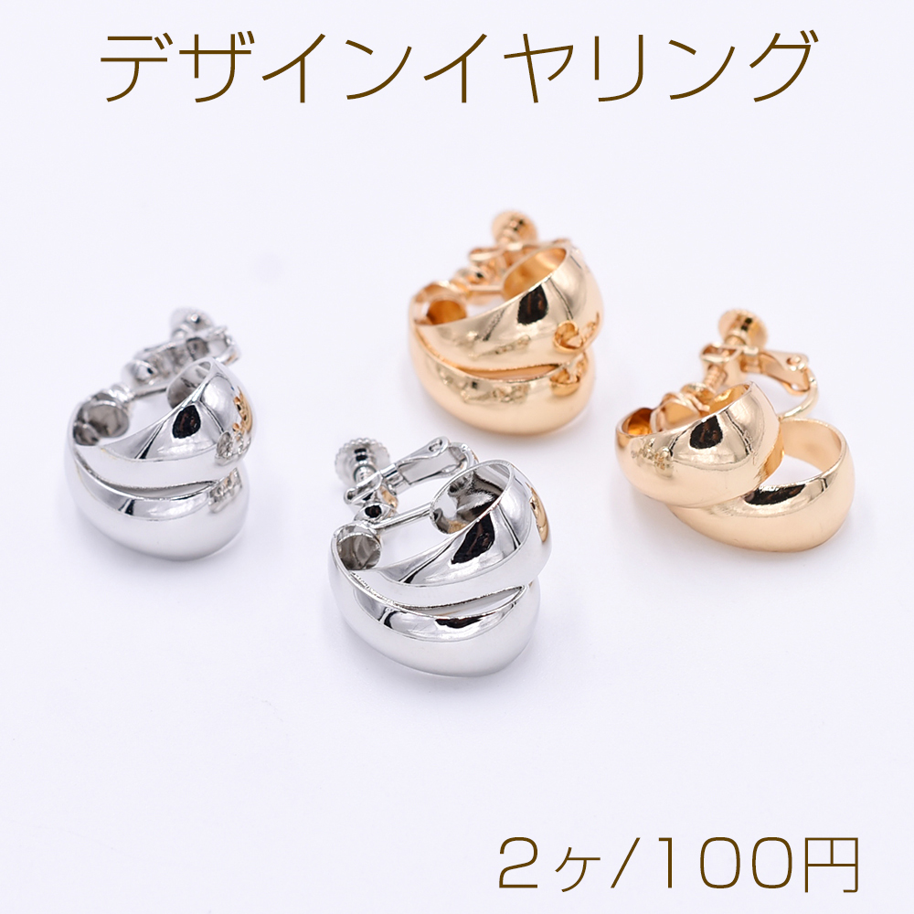 デザインイヤリング ネジバネ式 Cフープ 2連 15×21mm【2ヶ】