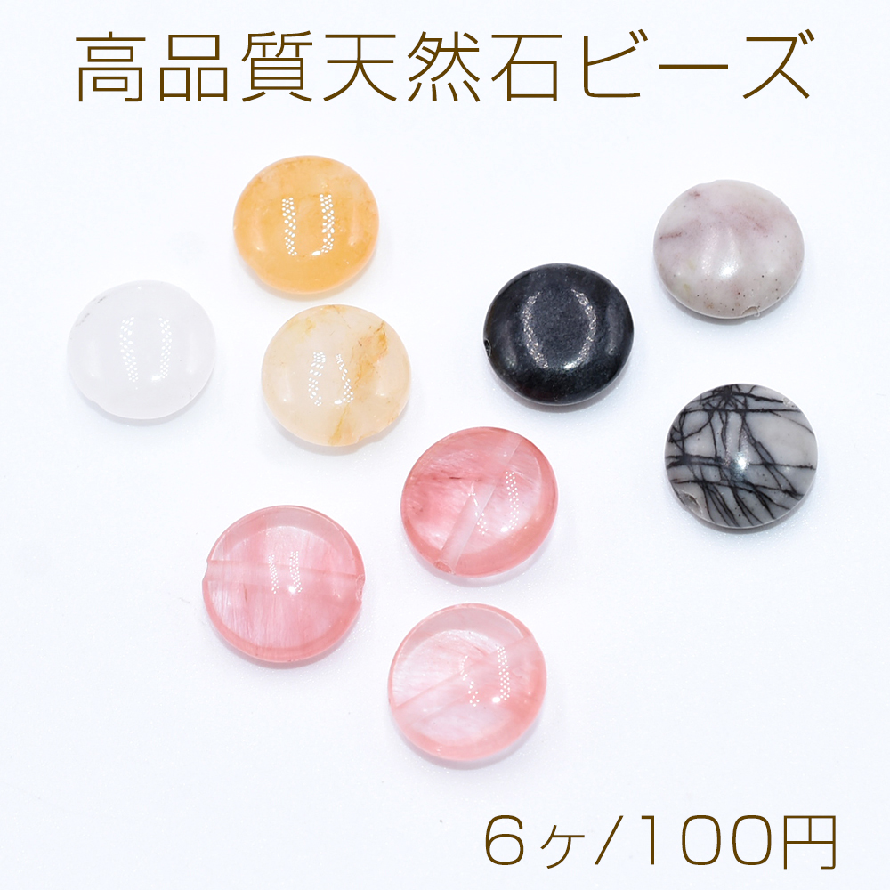 高品質天然石ビーズ コイン型 12mm【6ヶ】