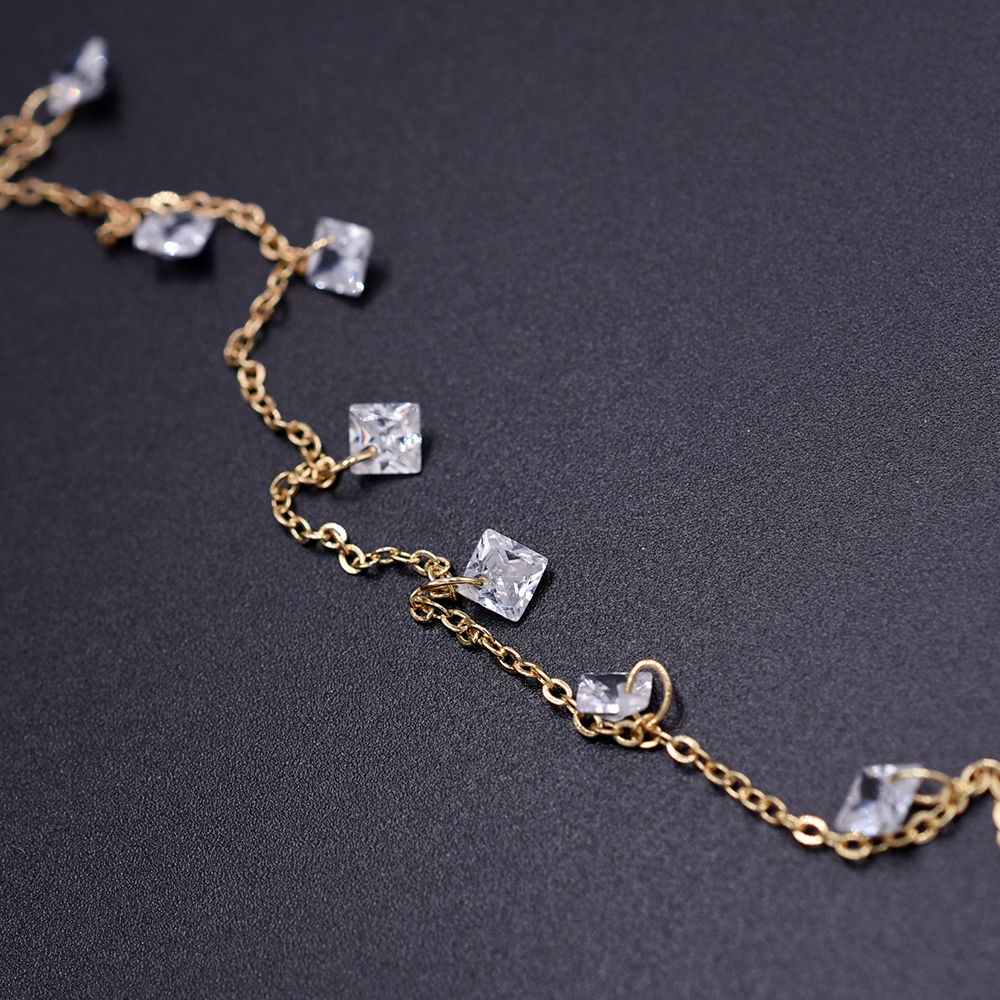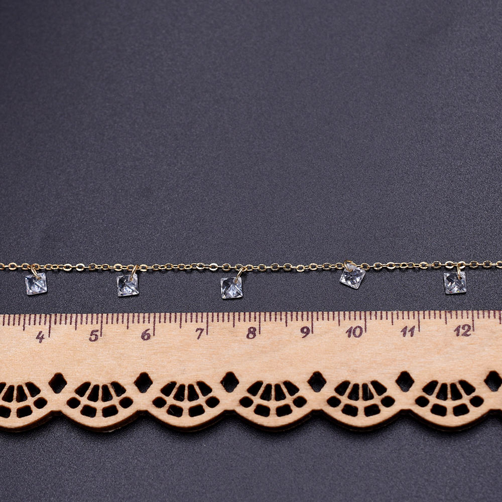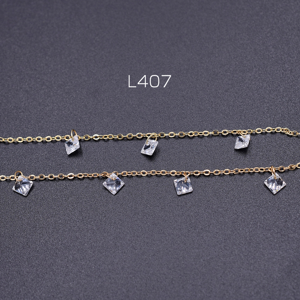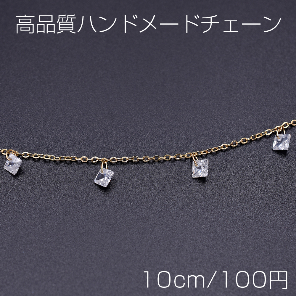 高品質ハンドメードチェーン ガラスチャーム 菱形 5×5mm ゴールド/クリスタル【10cm】