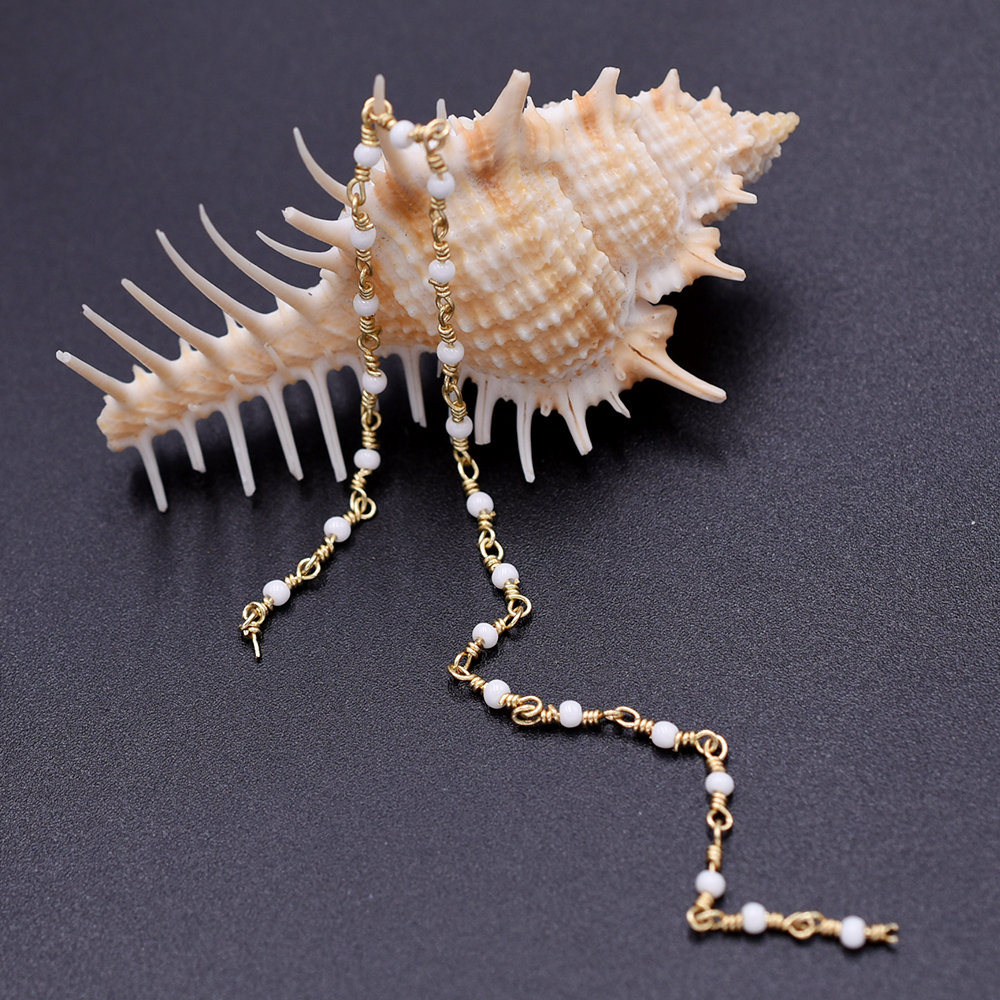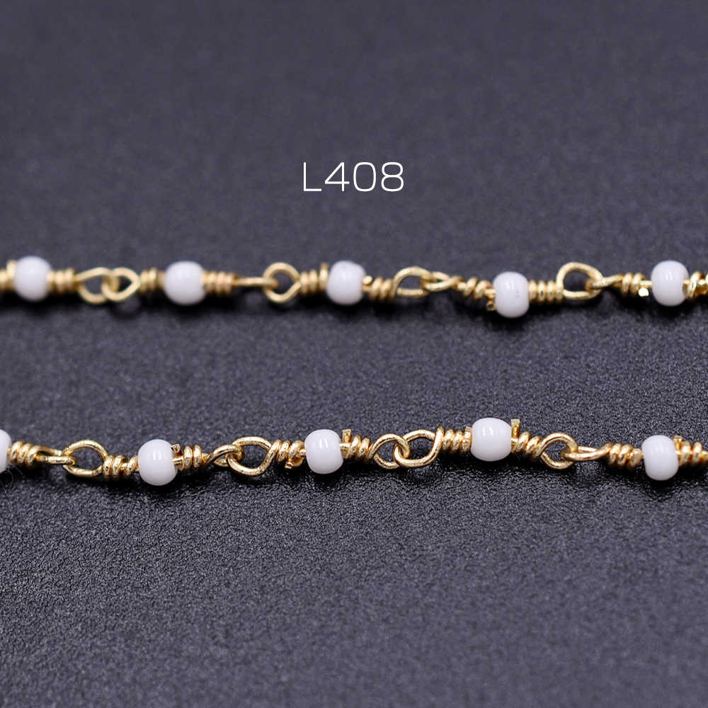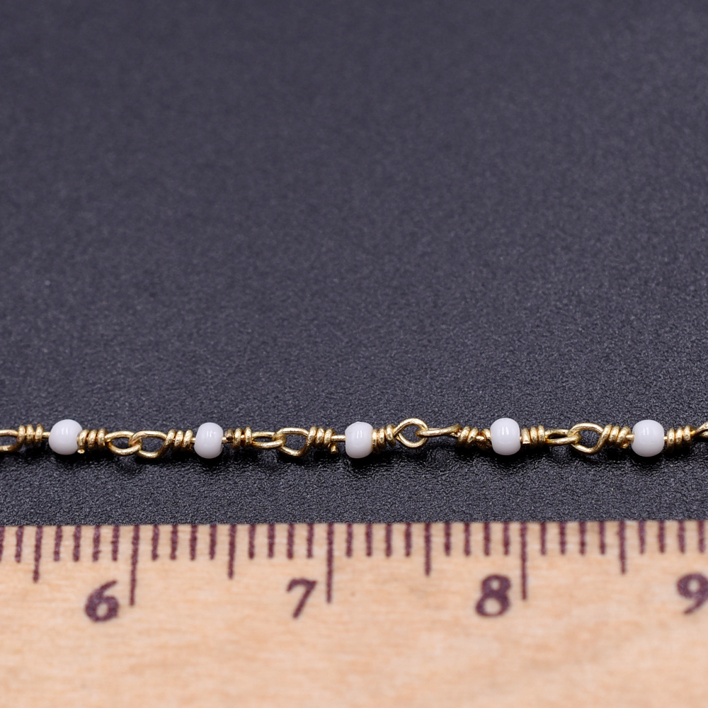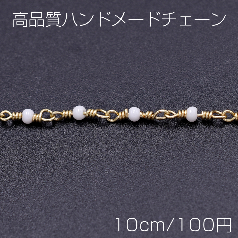 高品質ハンドメードチェーン ガラスビース 1.8mm ゴールド/ホワイト【10cm】
