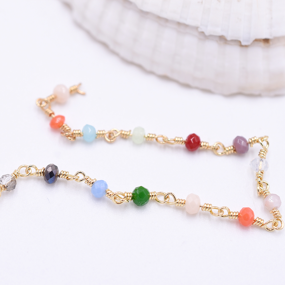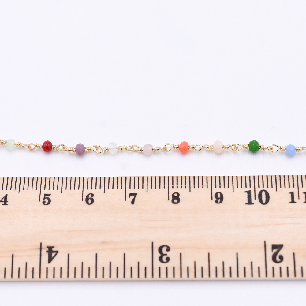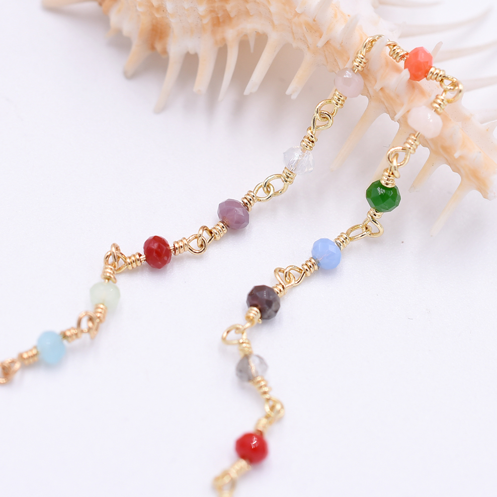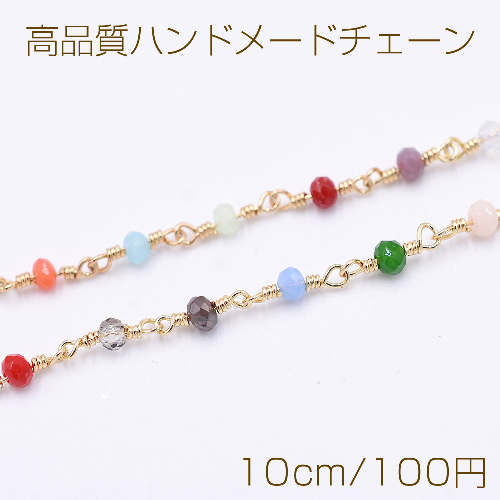 高品質ハンドメードチェーン ガラスビース 2×3mm ゴールド/カラー【10cm】