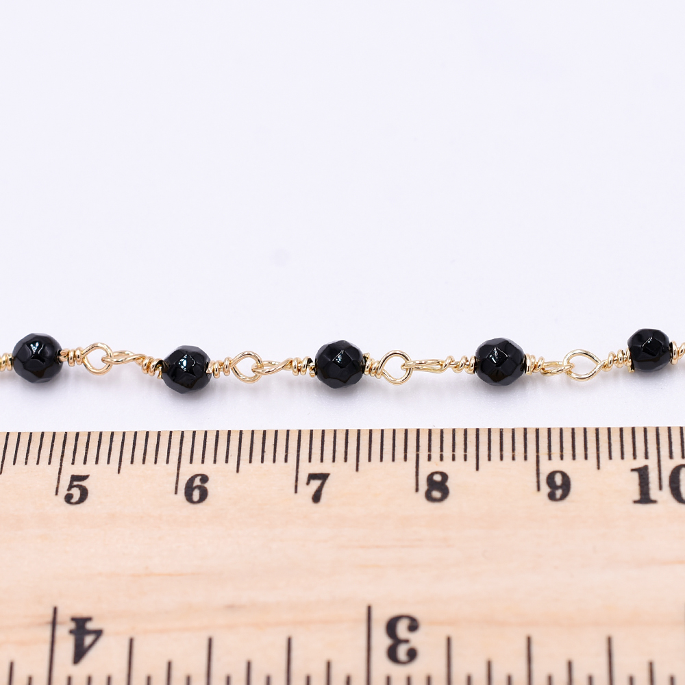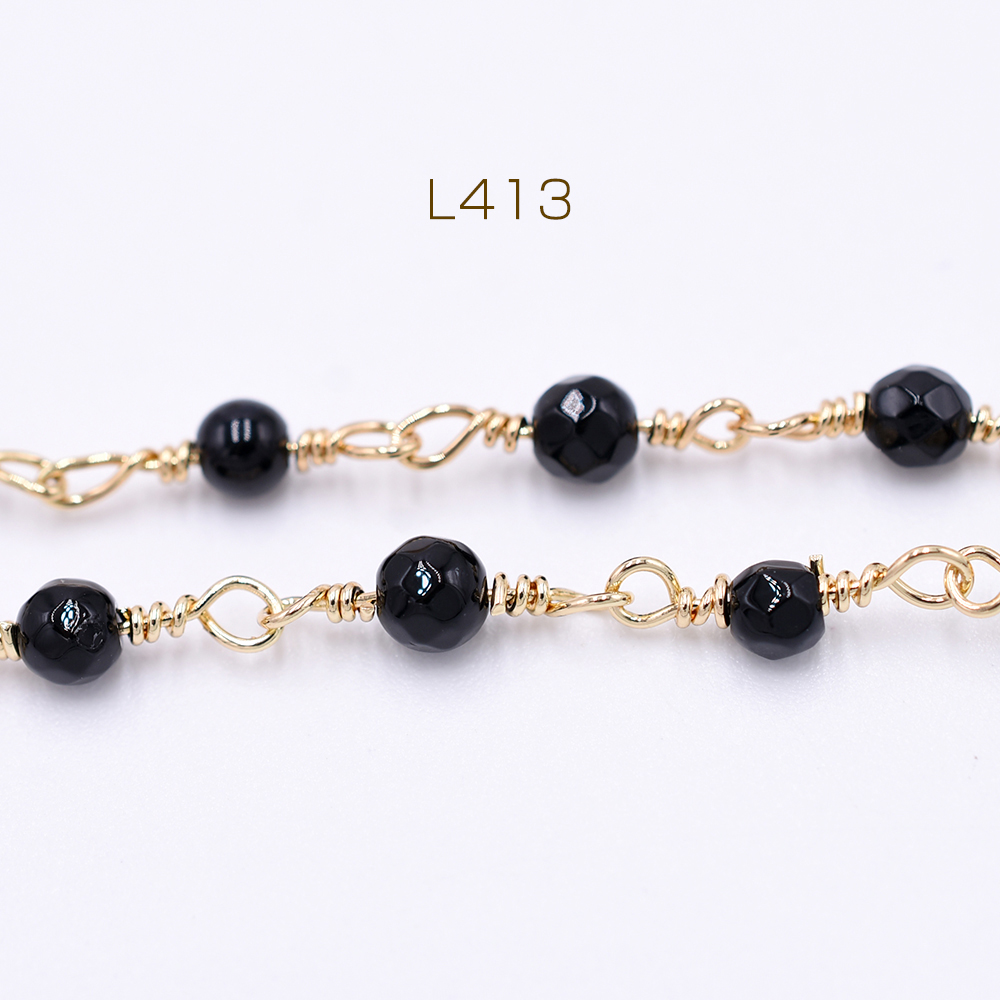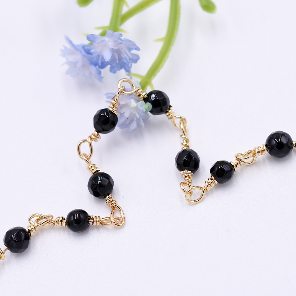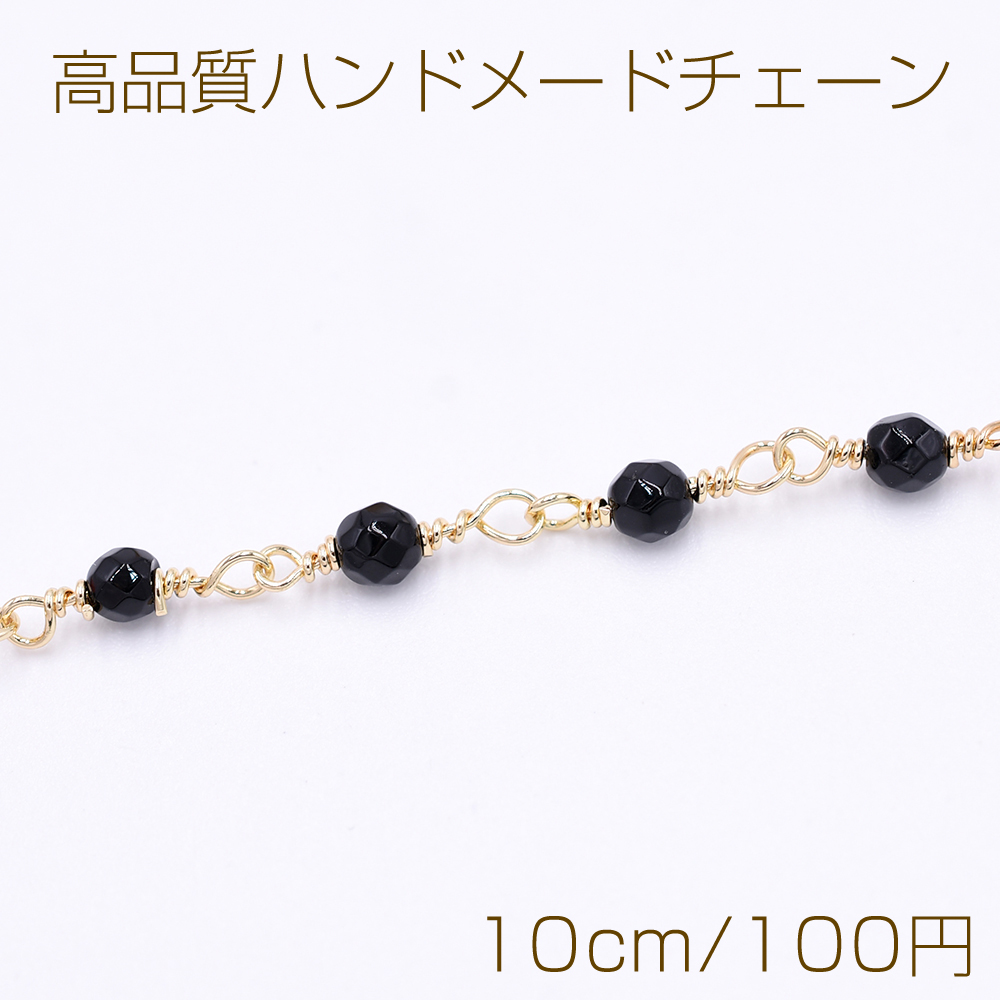 高品質ハンドメードチェーン ブラックオニキス 4mm ゴールド【10cm】