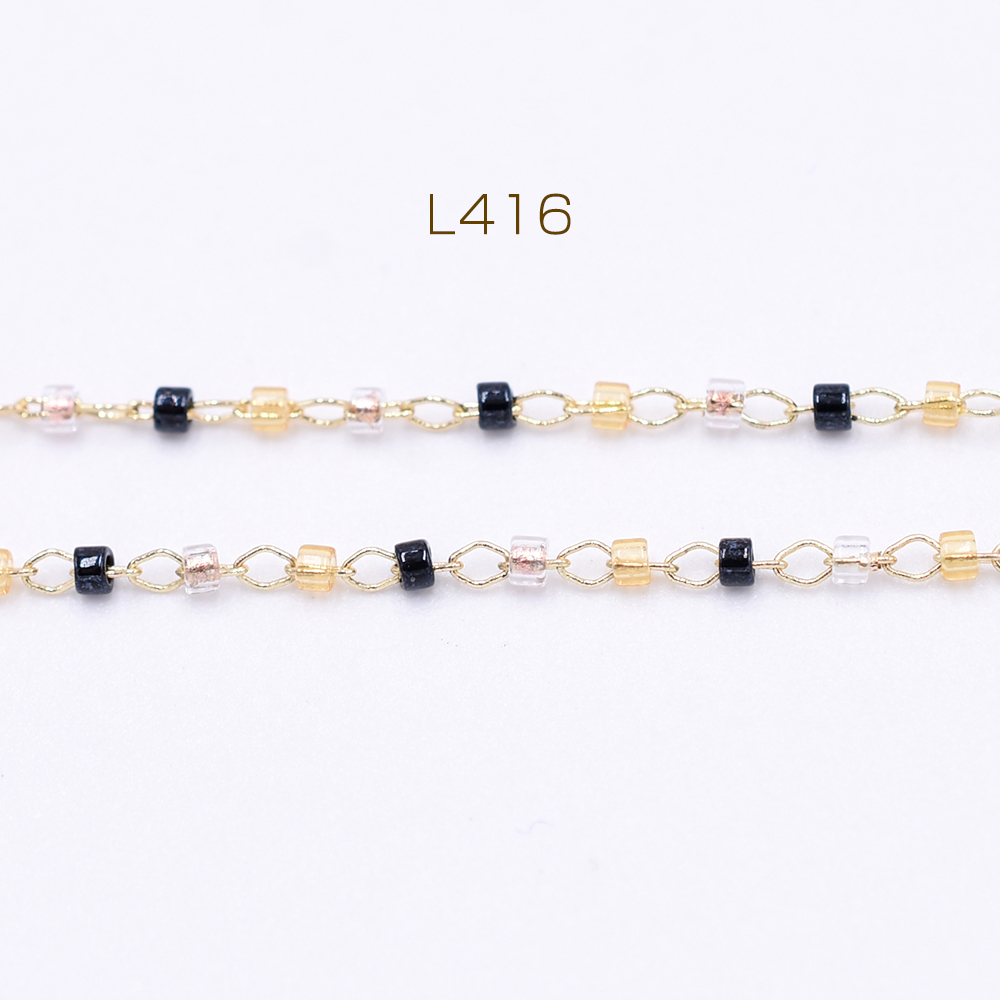 高品質ハンドメードチェーン ガラスビース 1.5mm ゴールド/カラー【10cm】
