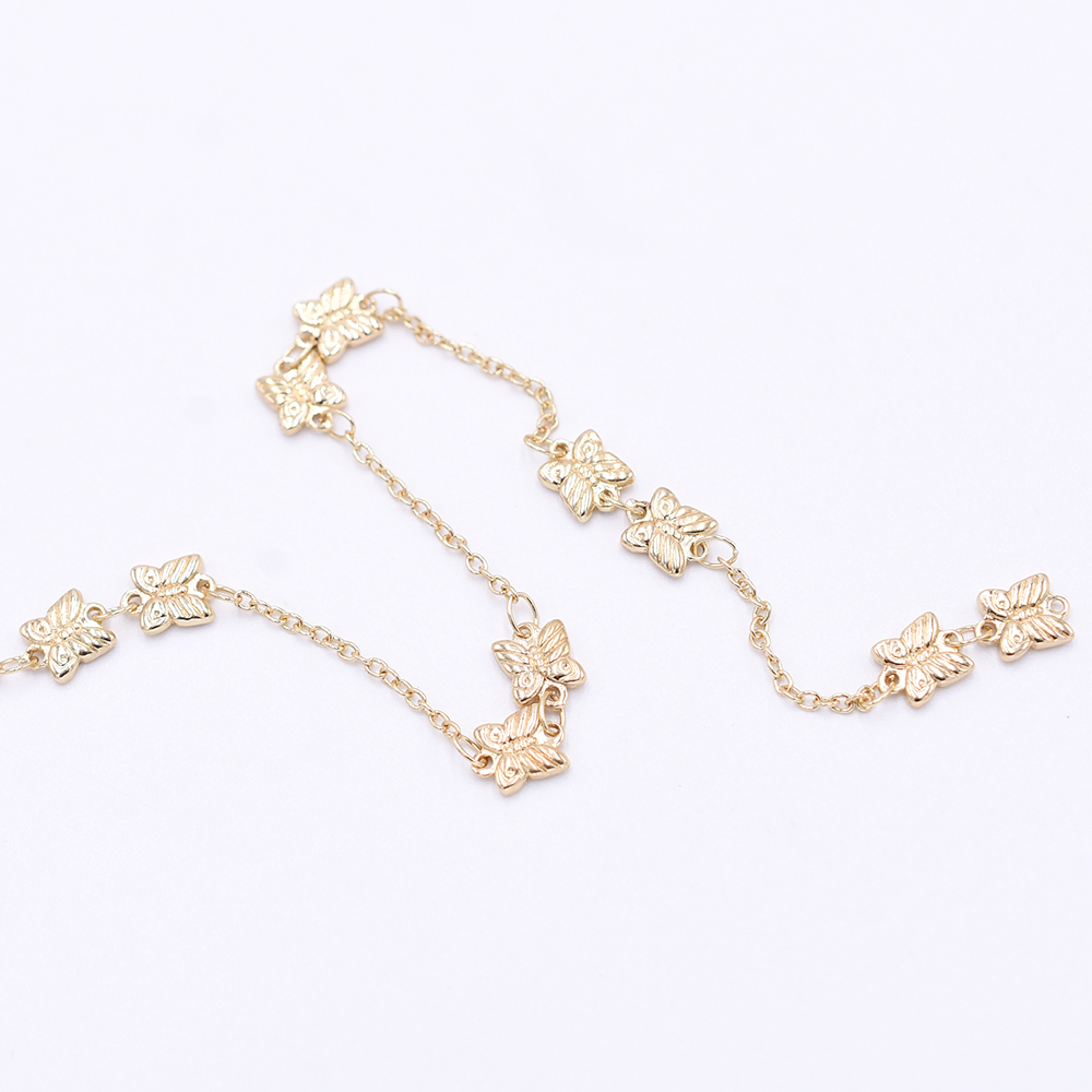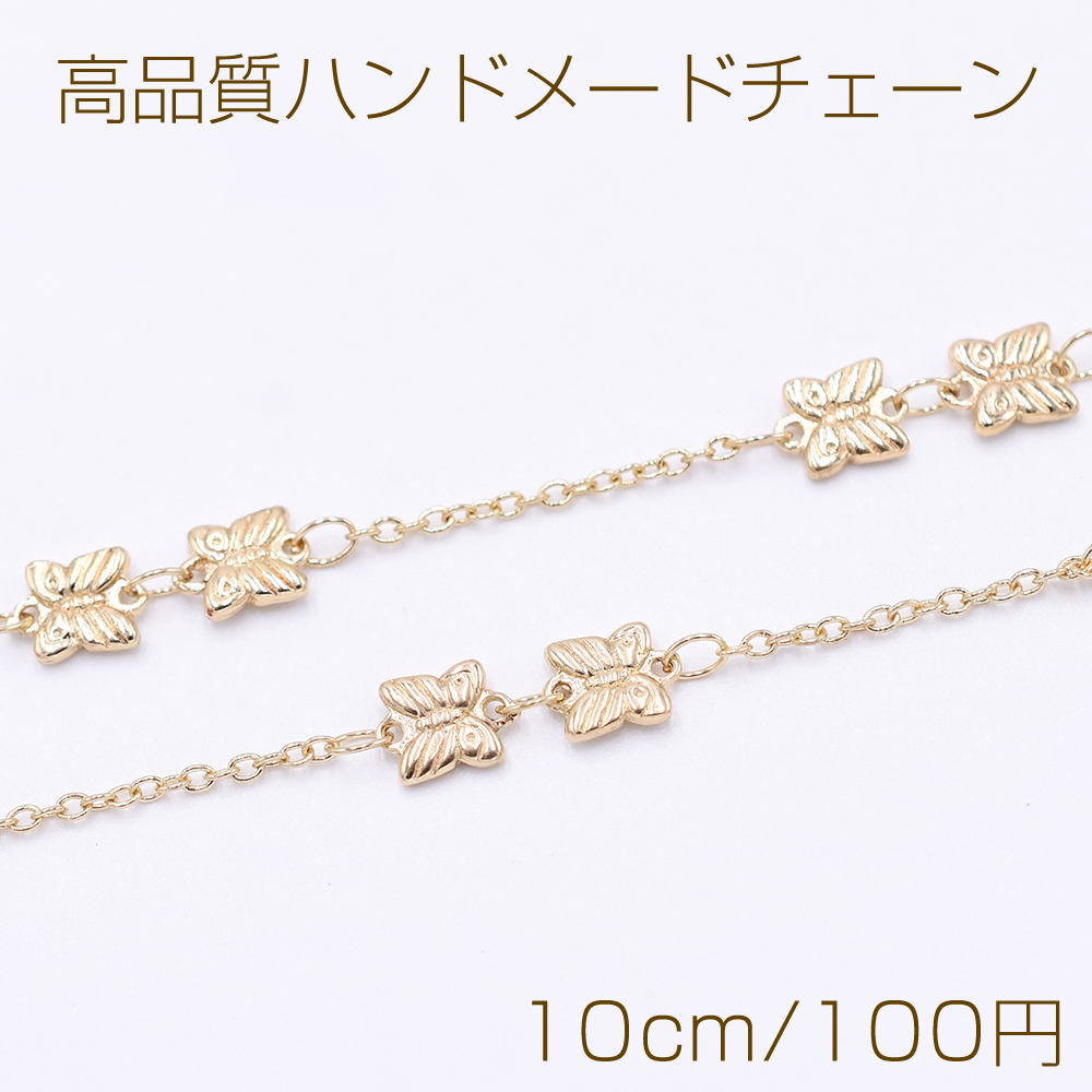 高品質ハンドメードチェーン 蝶 6×7.5mm ゴールド【10cm】