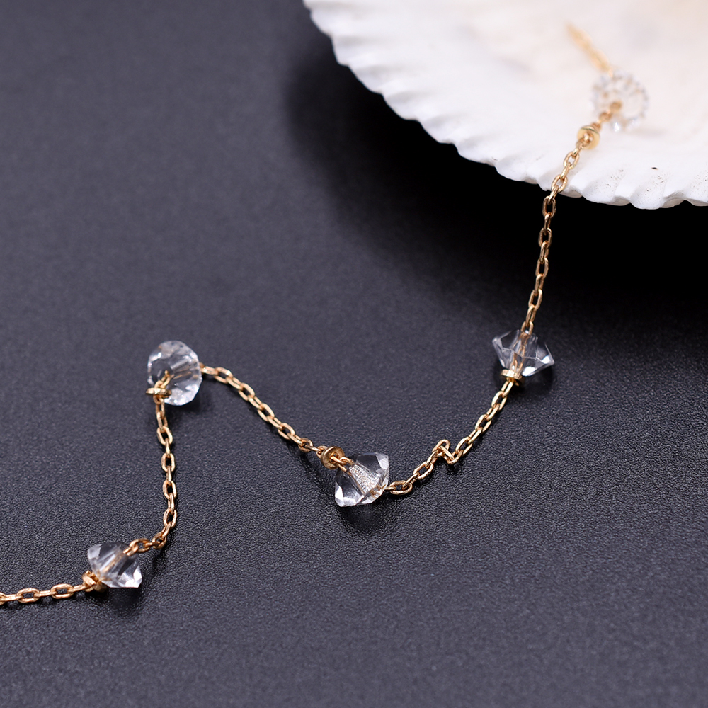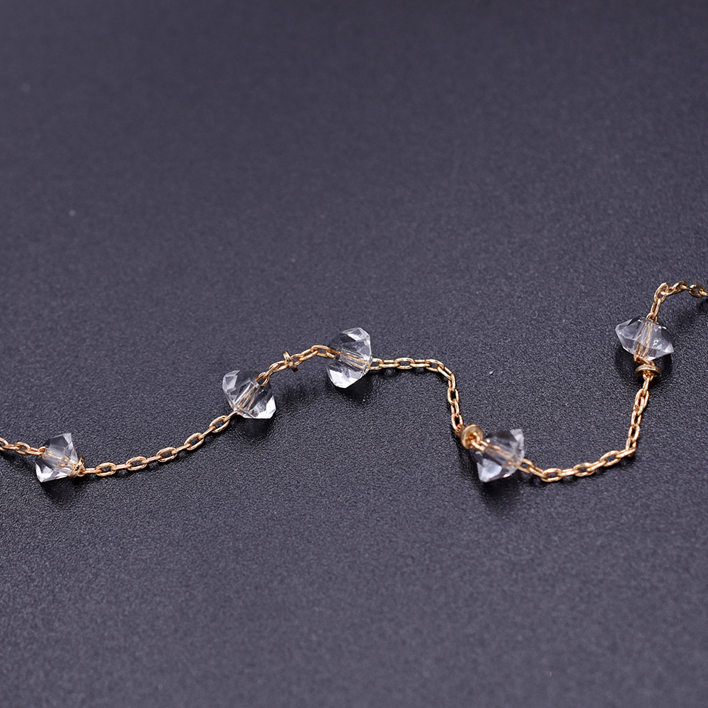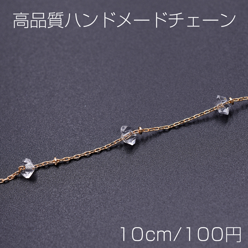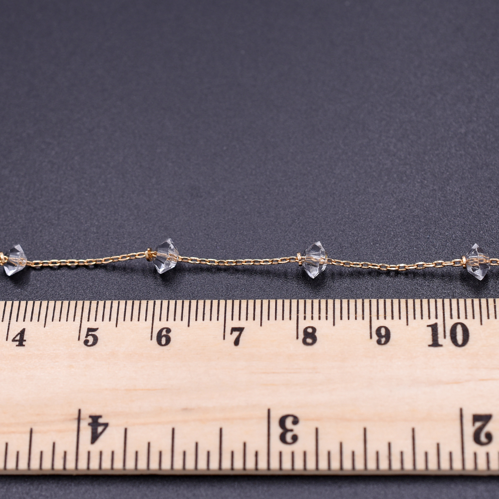 高品質ハンドメードチェーン ガラスビース 3×5mm ゴールド/クリスタル【10cm】