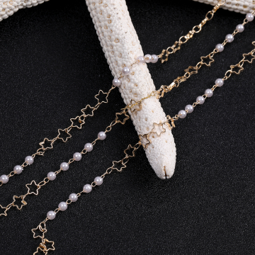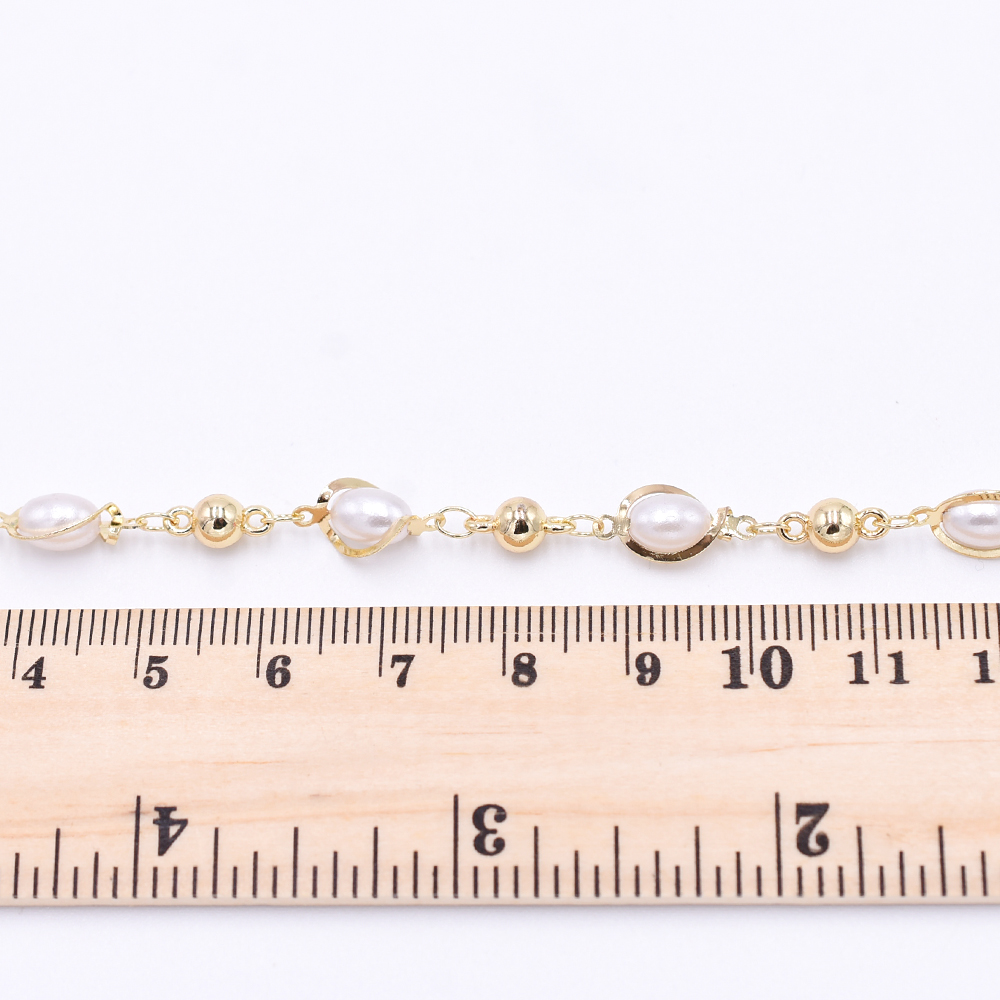 高品質ハンドメードチェーン CCB&パール ゴールド/ホワイト【10cm】