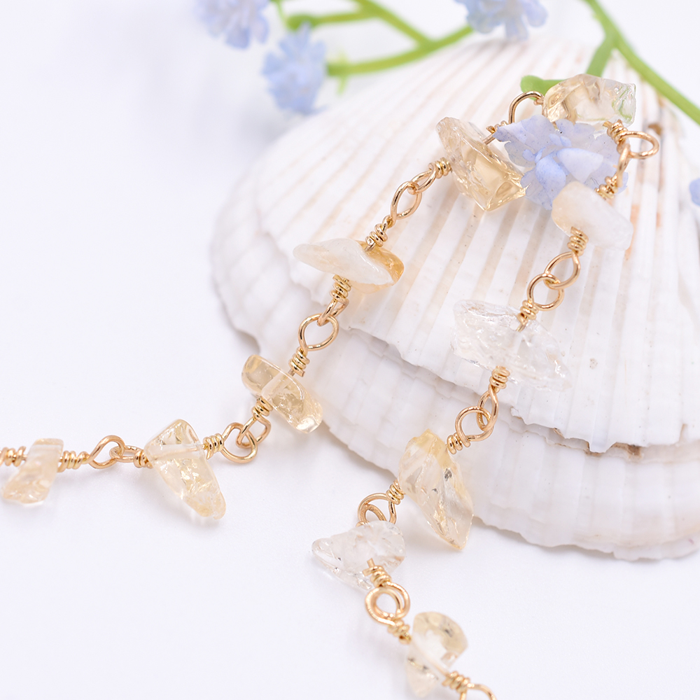 高品質ハンドメードチェーン シトリン さざれ ゴールド【10cm】