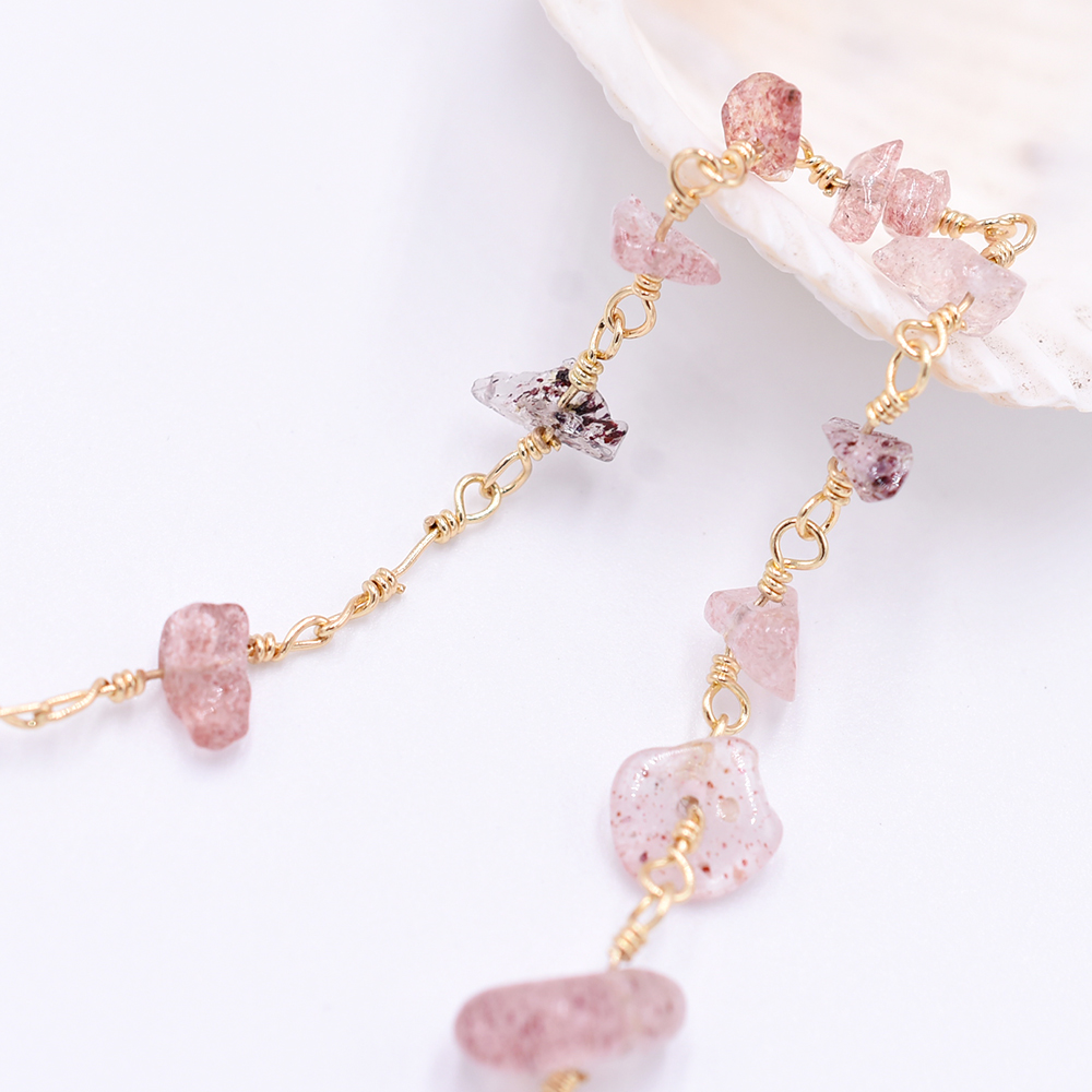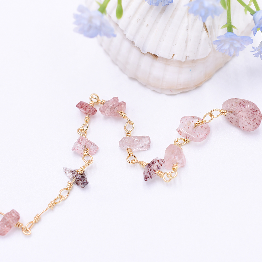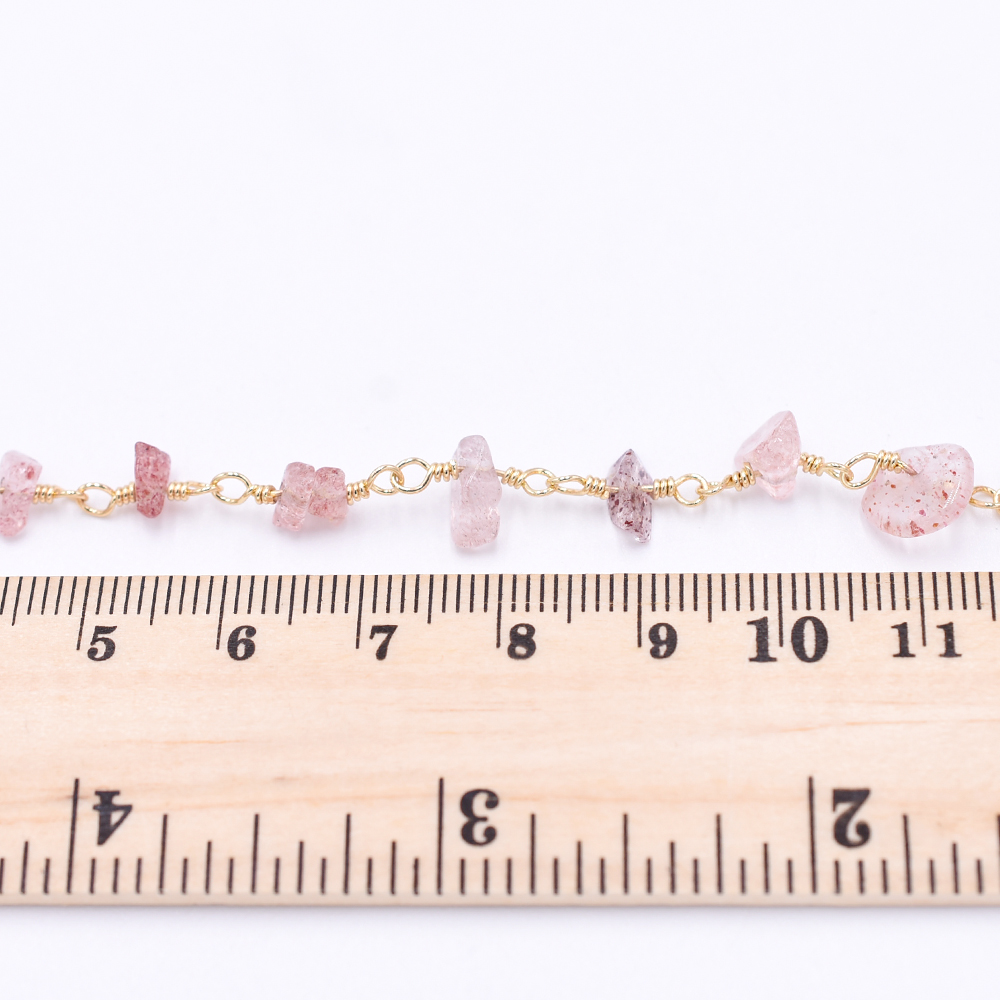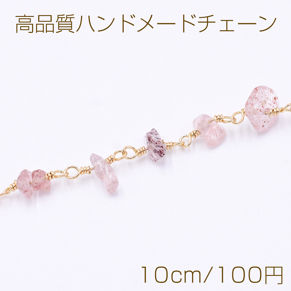 高品質ハンドメードチェーン ストロベリークオーツ さざれ ゴールド【10cm】
