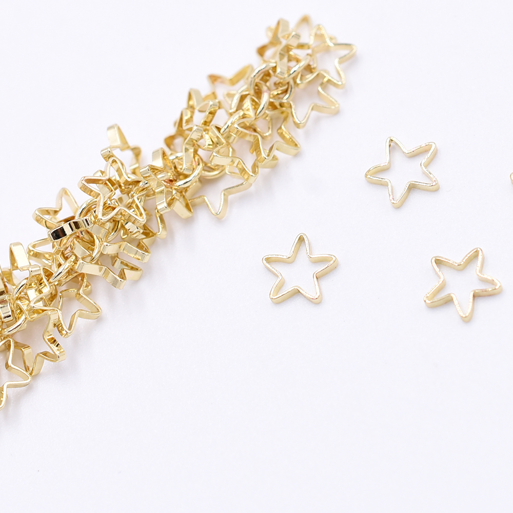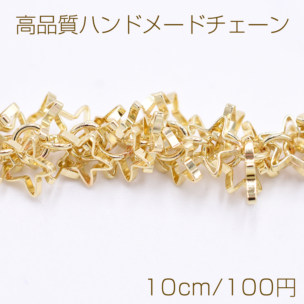 高品質ハンドメードチェーン 星フレーム 7×7mm ゴールド【10cm】