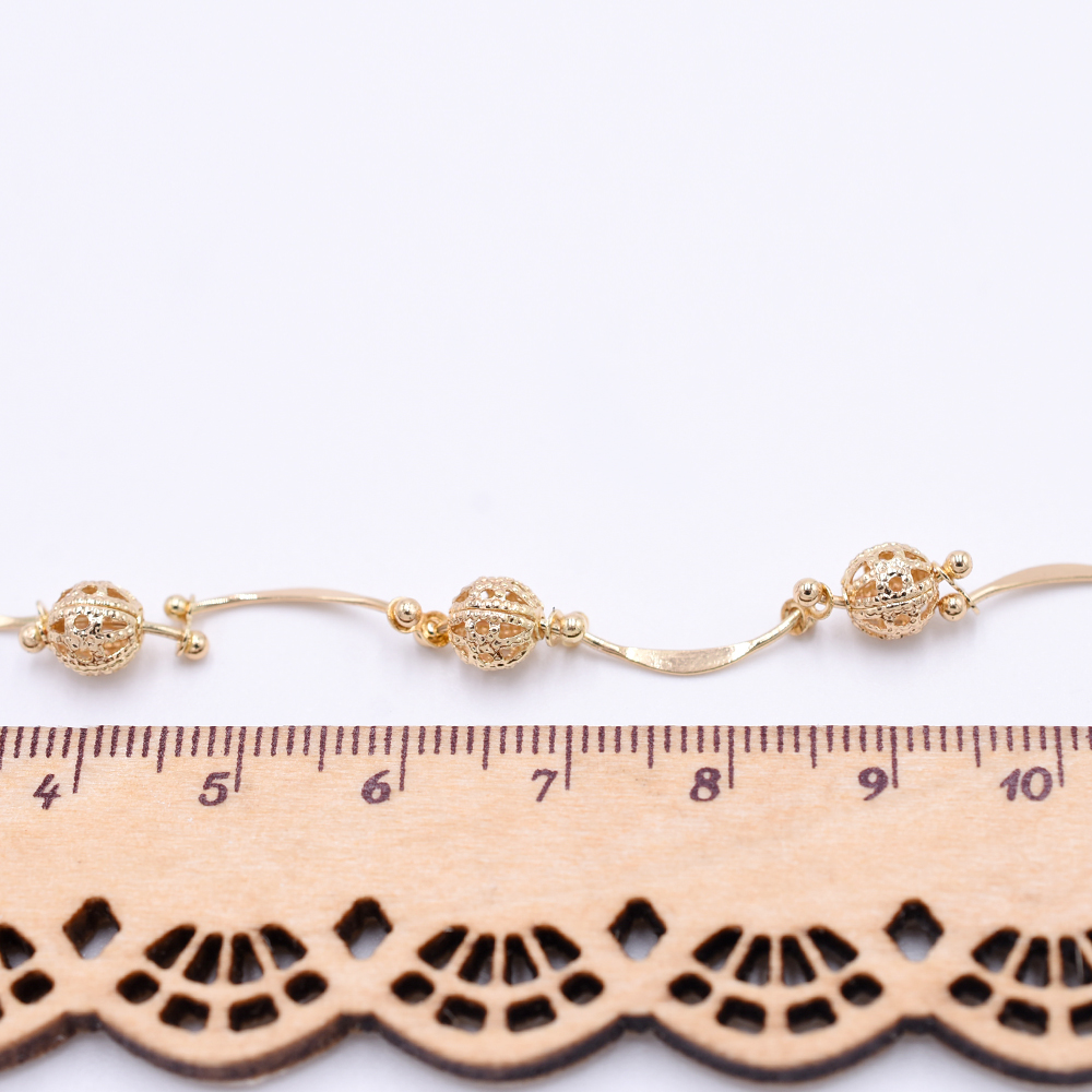 高品質ハンドメードチェーン 透かしボール 6mm ゴールド【10cm】