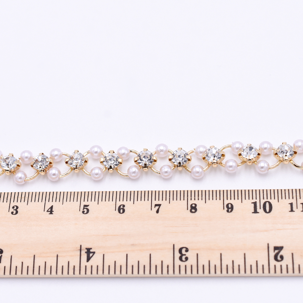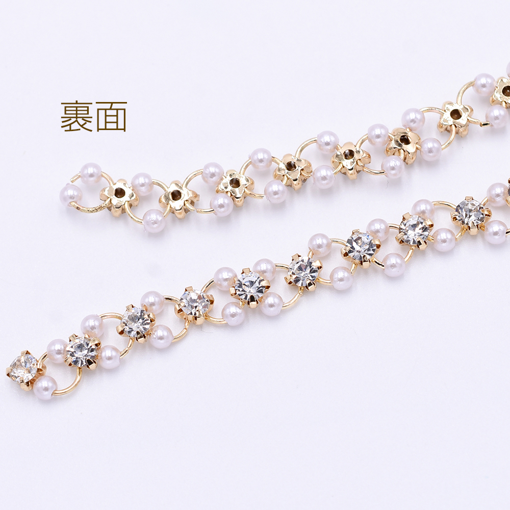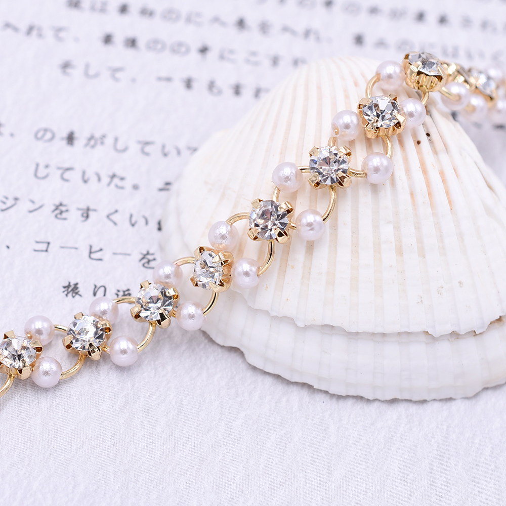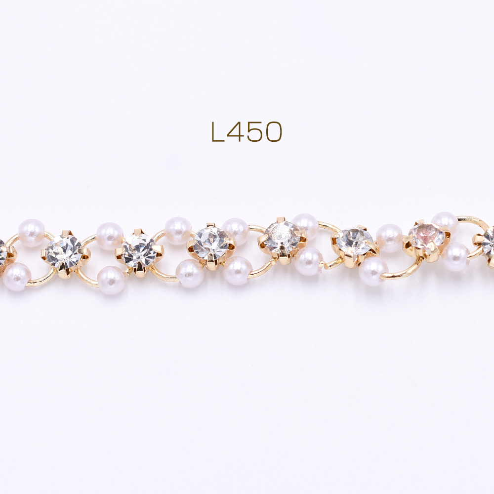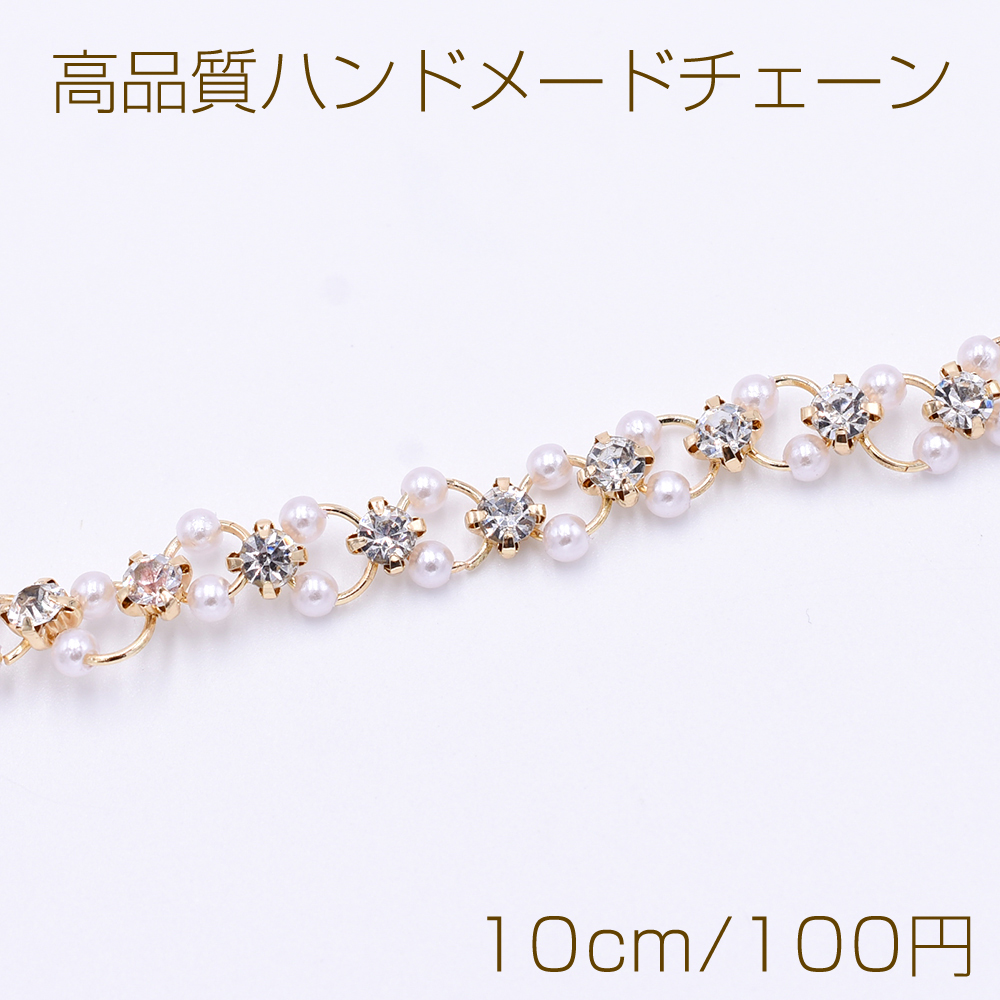 高品質ハンドメードチェーン パール&爪付きラインストーン ゴールド/ホワイト【10cm】