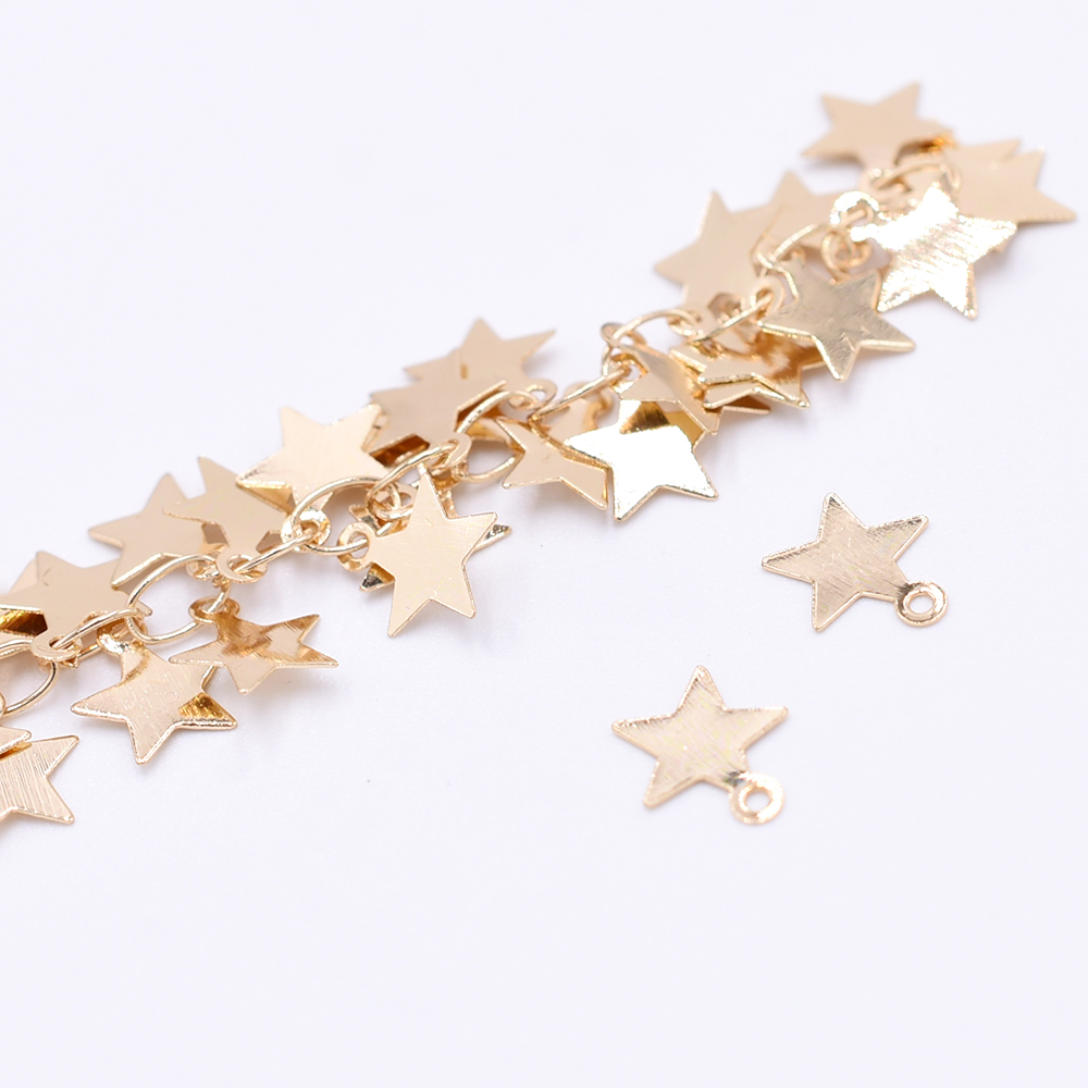 高品質ハンドメードチェーン 星型チャーム 7×8mm ゴールド【10cm】