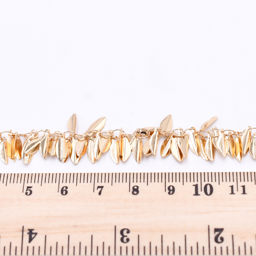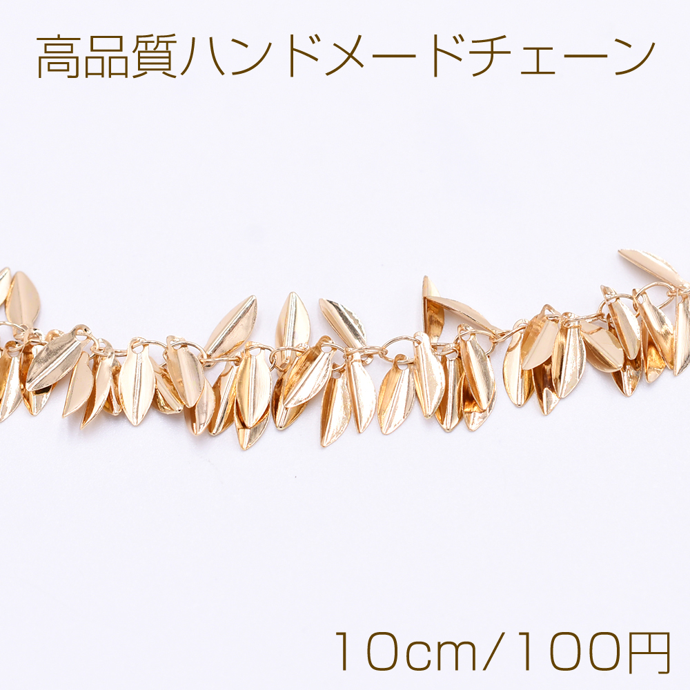 高品質ハンドメードチェーン リーフチャーム 3.5×8.5mm ゴールド【10cm】