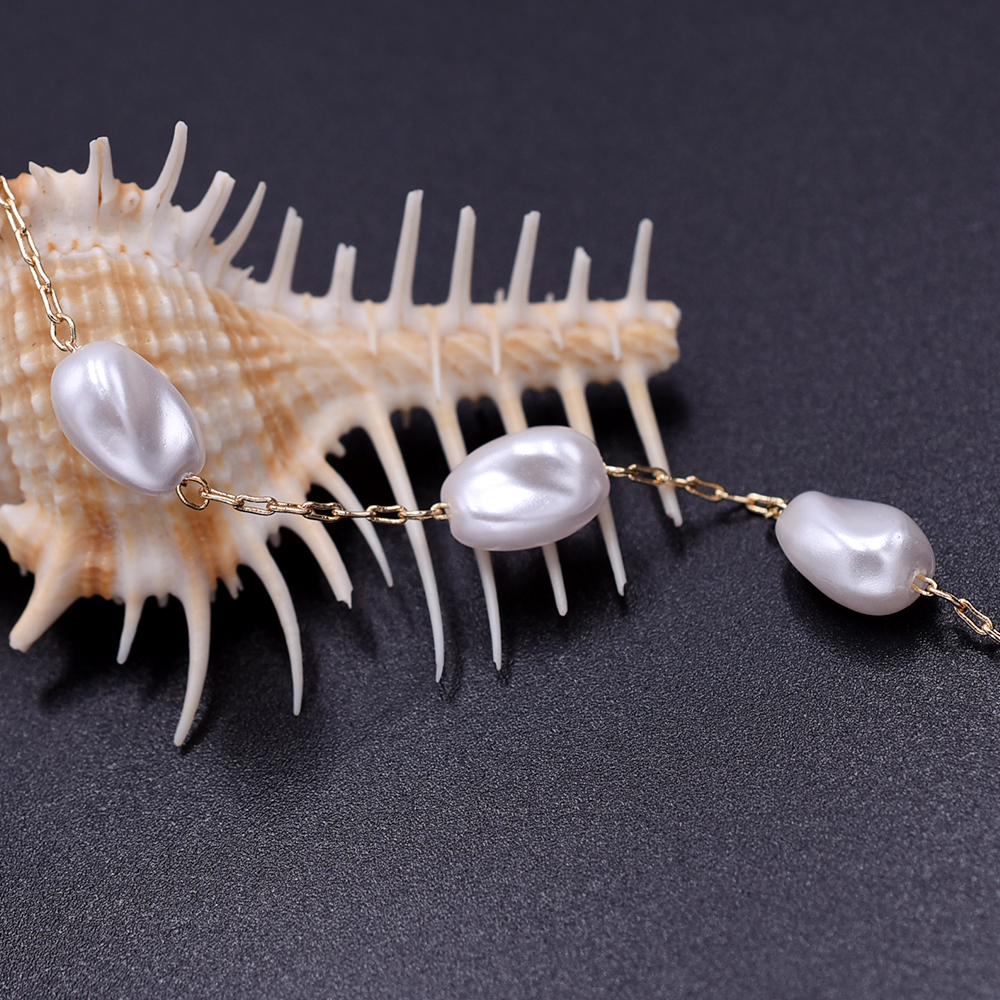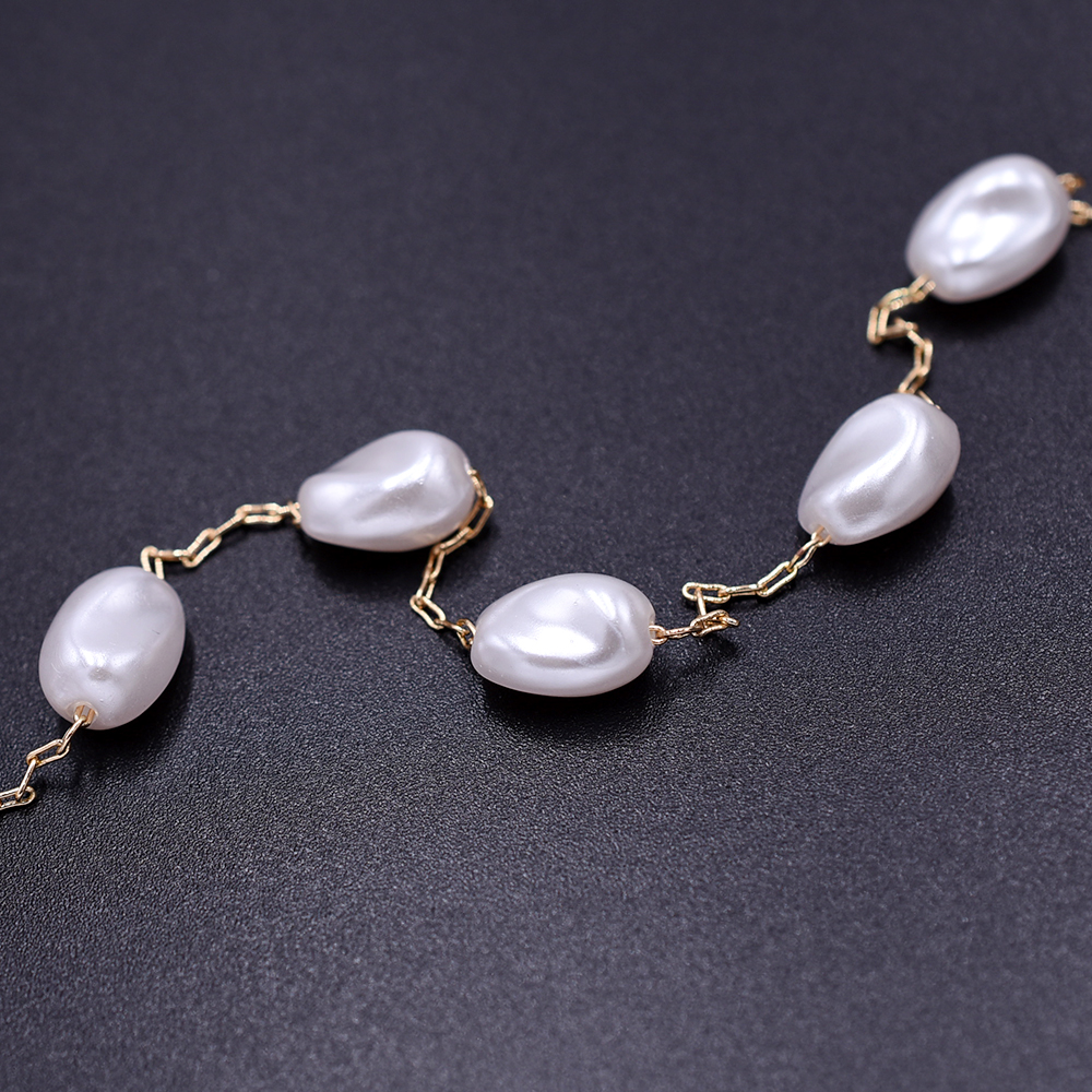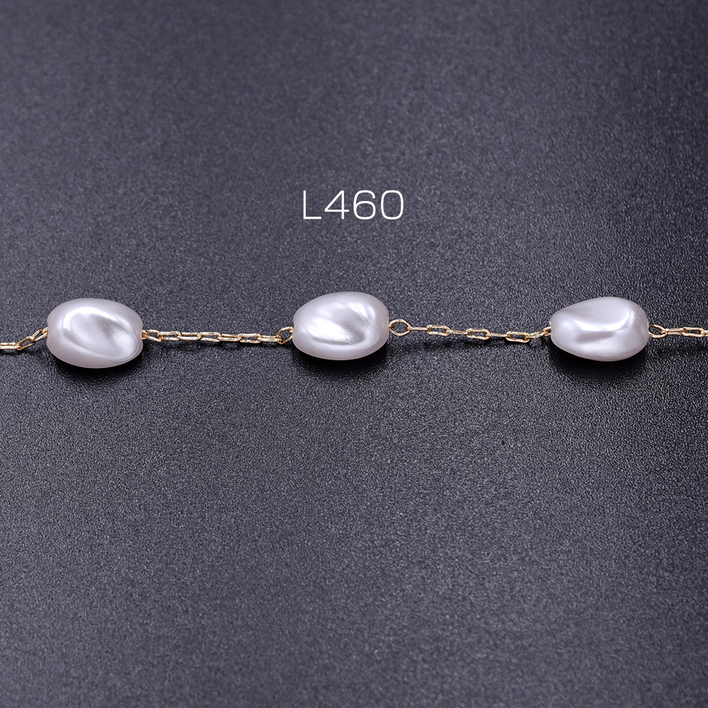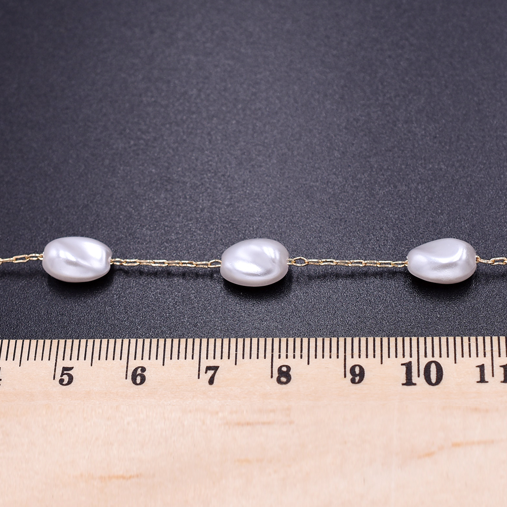 高品質ハンドメードチェーン パール ライス 7×10mm ゴールド/ホワイト【10cm】