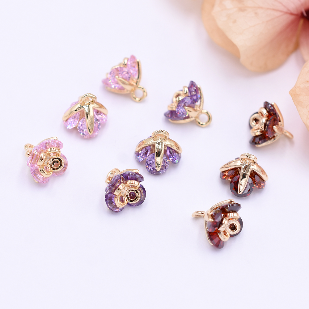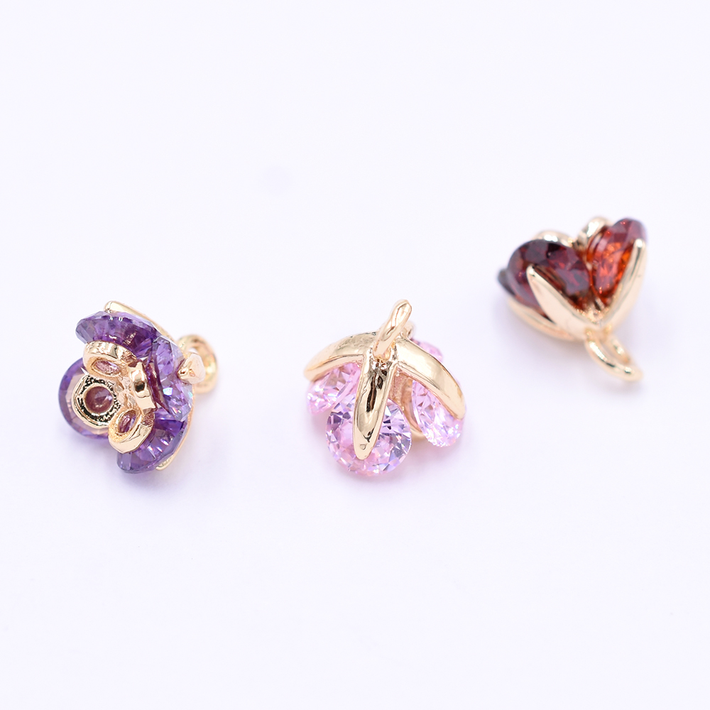 高品質ジルコニアチャーム 四弁花 1カン 6.5×7.5mm ゴールド【1ヶ】