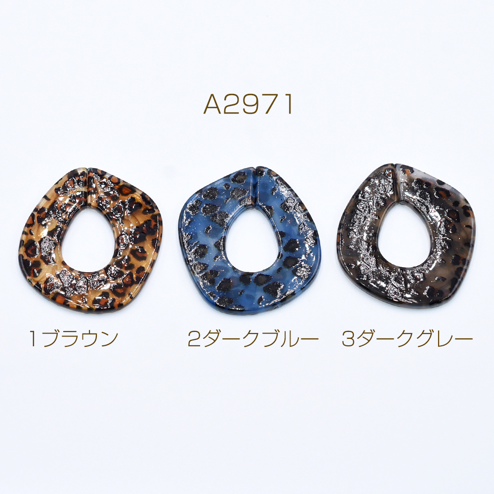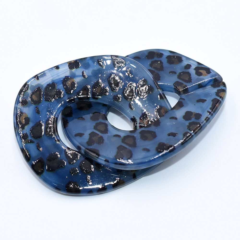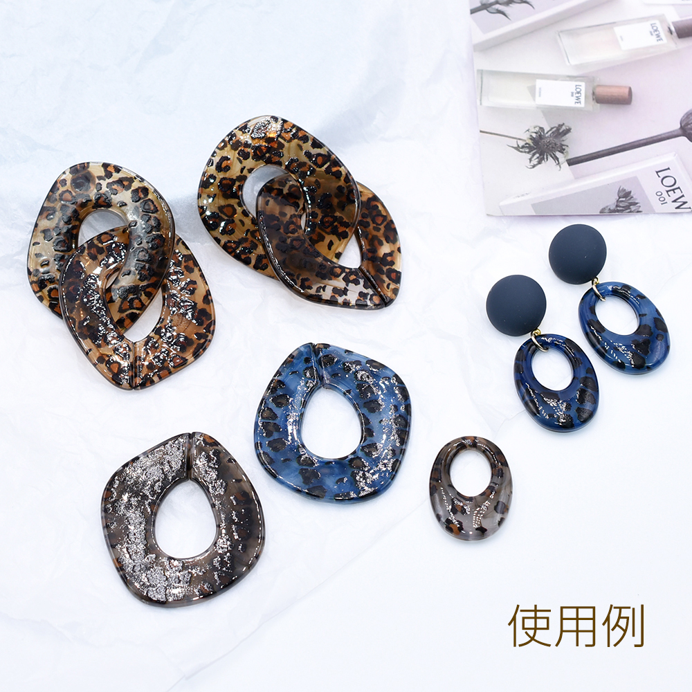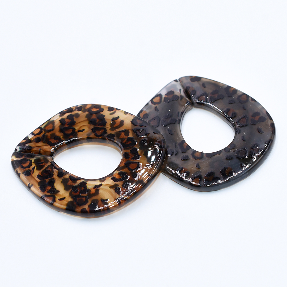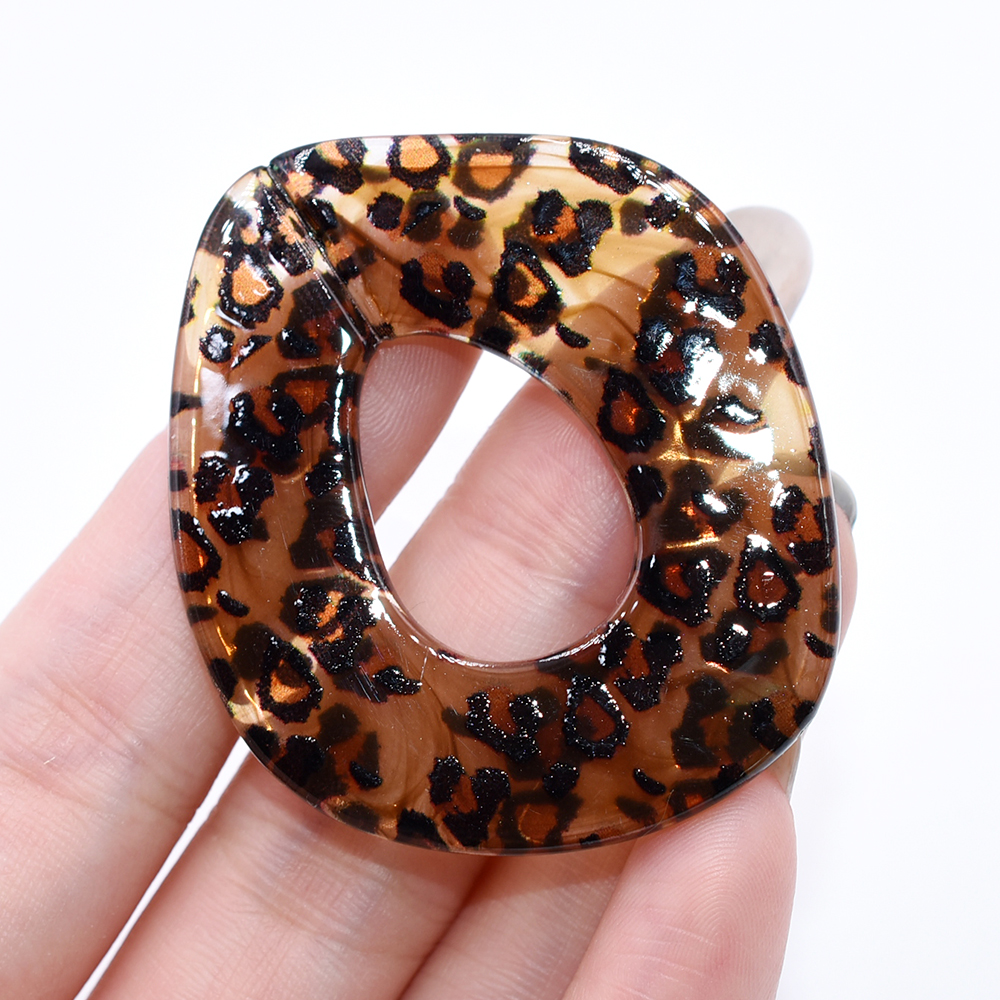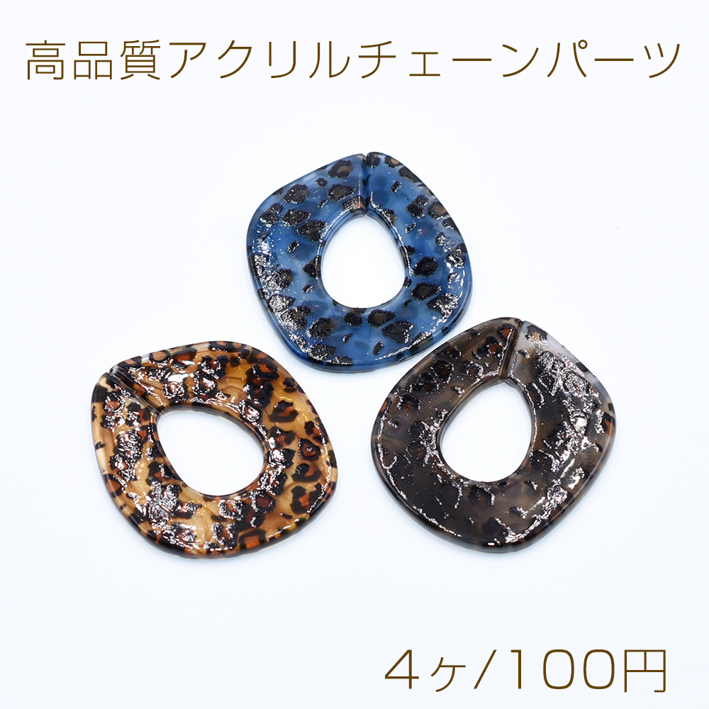 チェーンパーツ ヒョウ柄 アニマル柄 アクリル製 大ぶりリングパーツ 切れ目あり 46×52mm(4ヶ)
