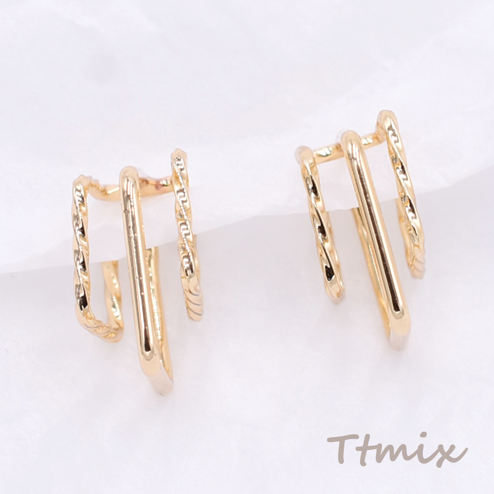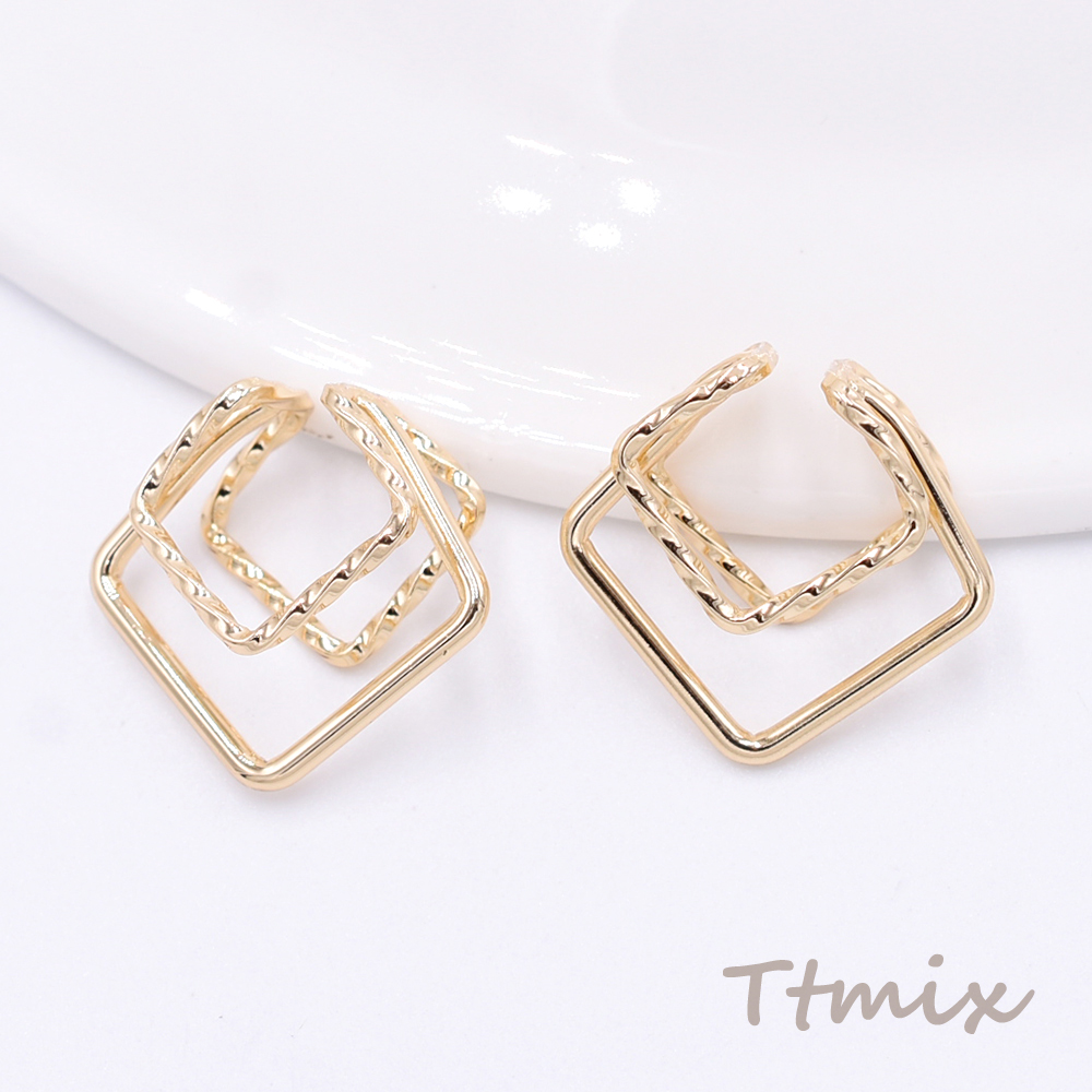 イヤーカフ スクエア 3連 スリット入 20.5×21.5mm 片耳用 ゴールド【1ヶ】