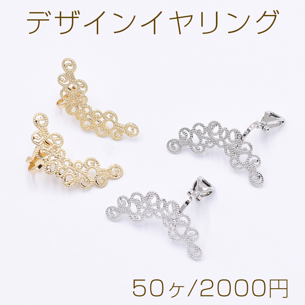 デザインイヤリング(片耳用) 三角バネ式 透かしフラワー 14×32mm【50ヶ】