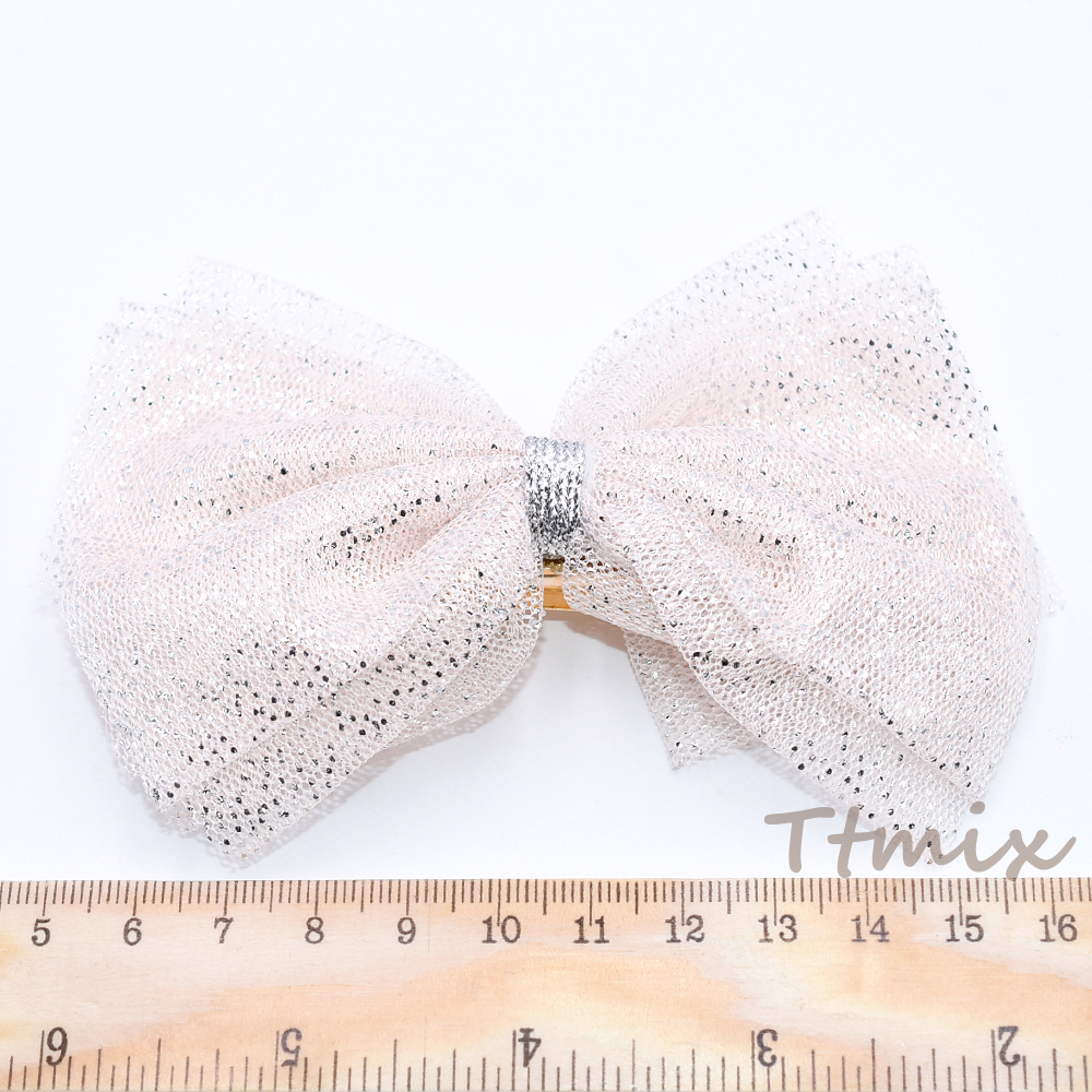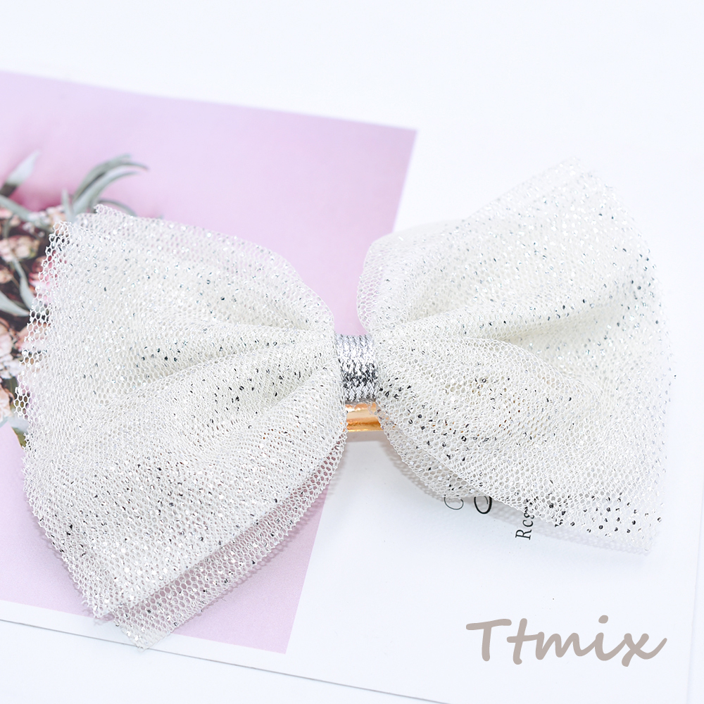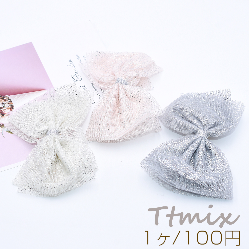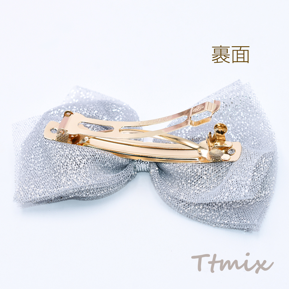 ヘアバレッタ チュールリボン シルバーラメ入り ヘアアクセサリー【1ヶ】