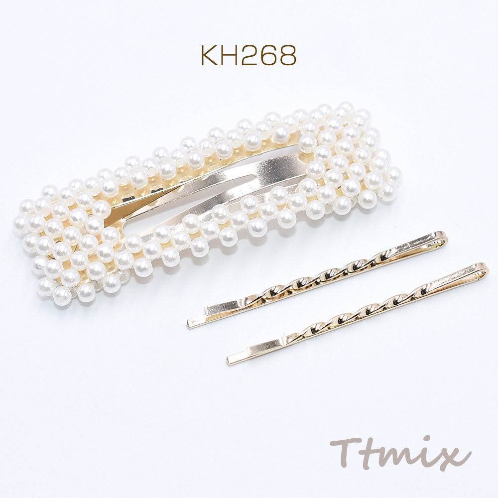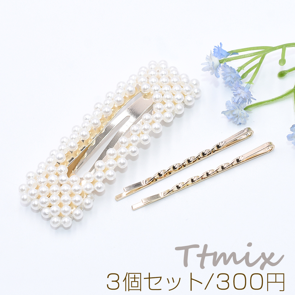 パールスリーピン×メタルヘアピン ヘアアクセサリー ゴールド【3個セット】