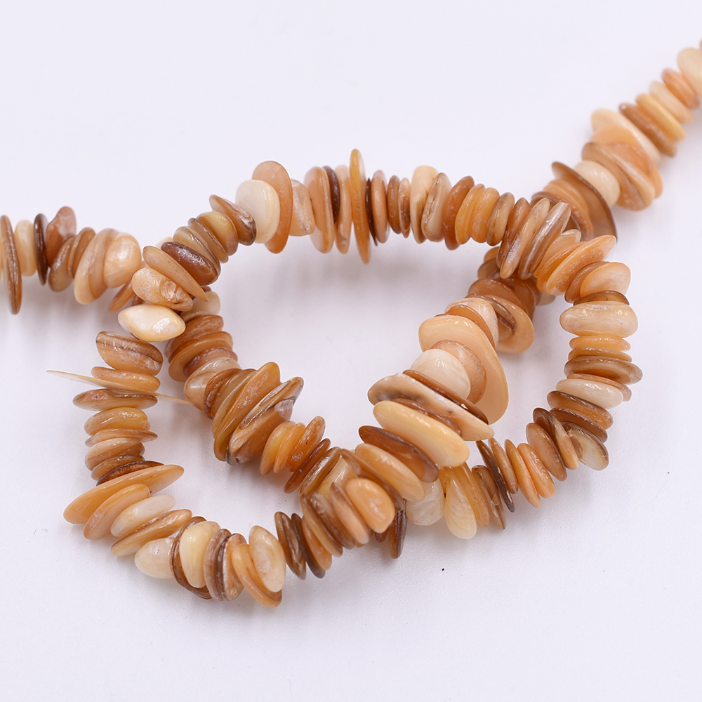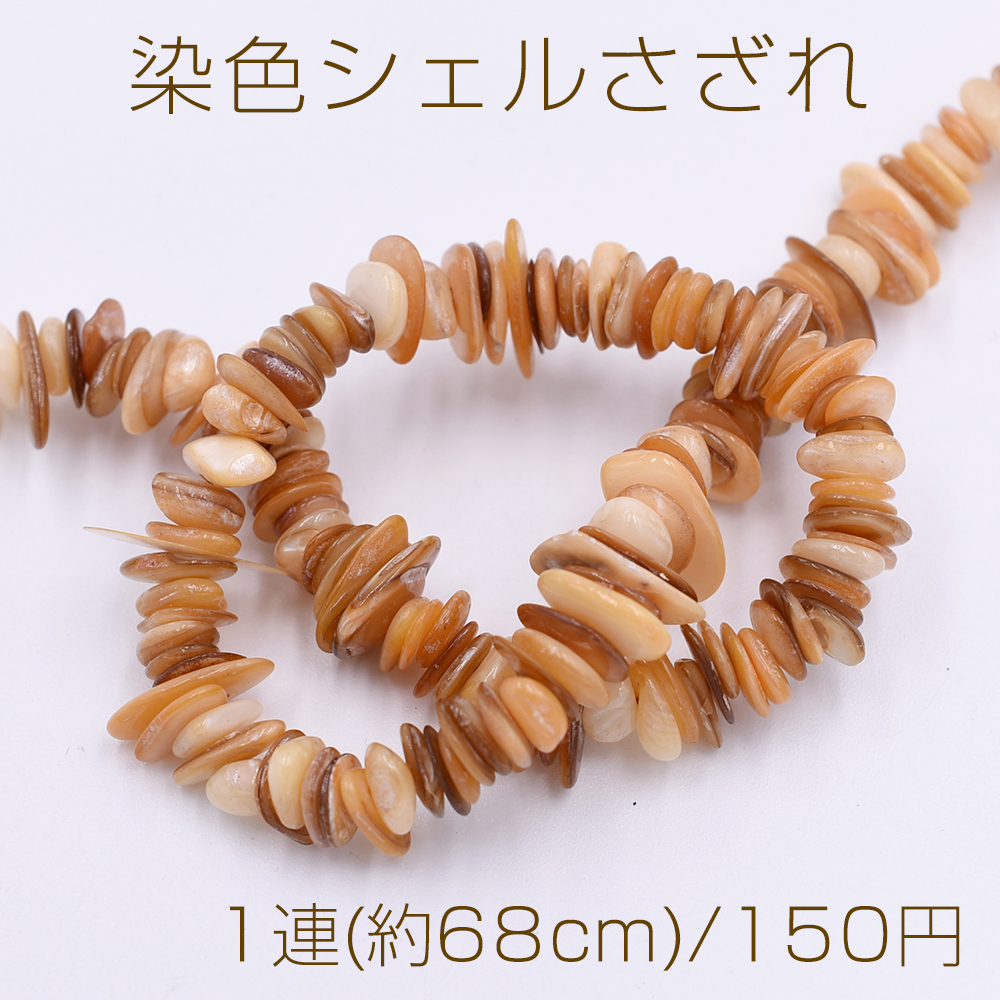染色シェルさざれ 不規則型 6-17mm ライトブラウン【1連(約68cm)】