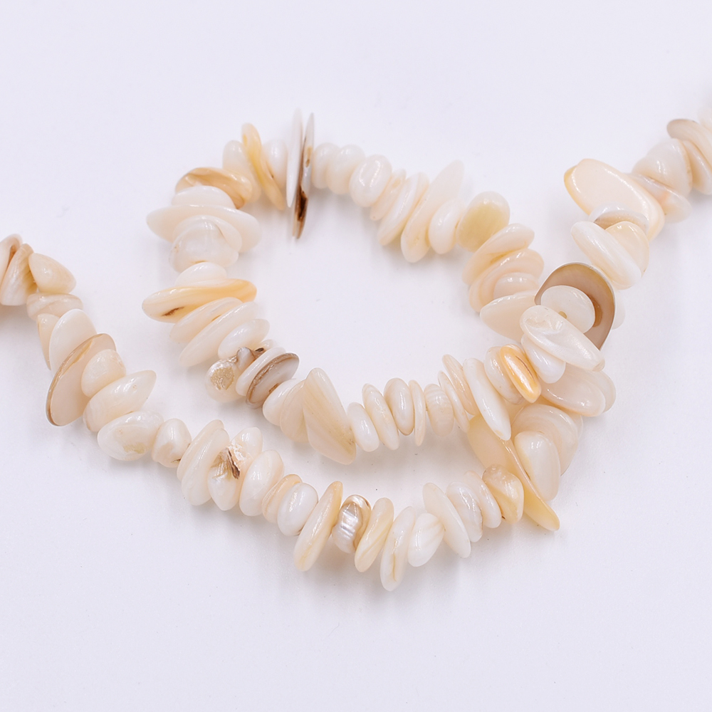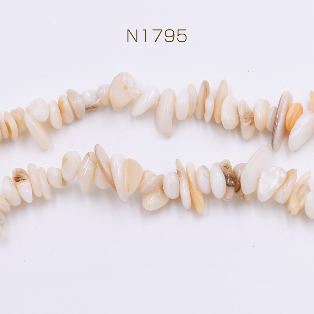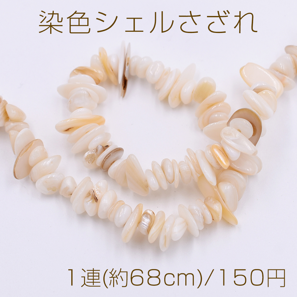 染色シェルさざれ 不規則型 6-17mm ベージュ【1連(約68cm)】