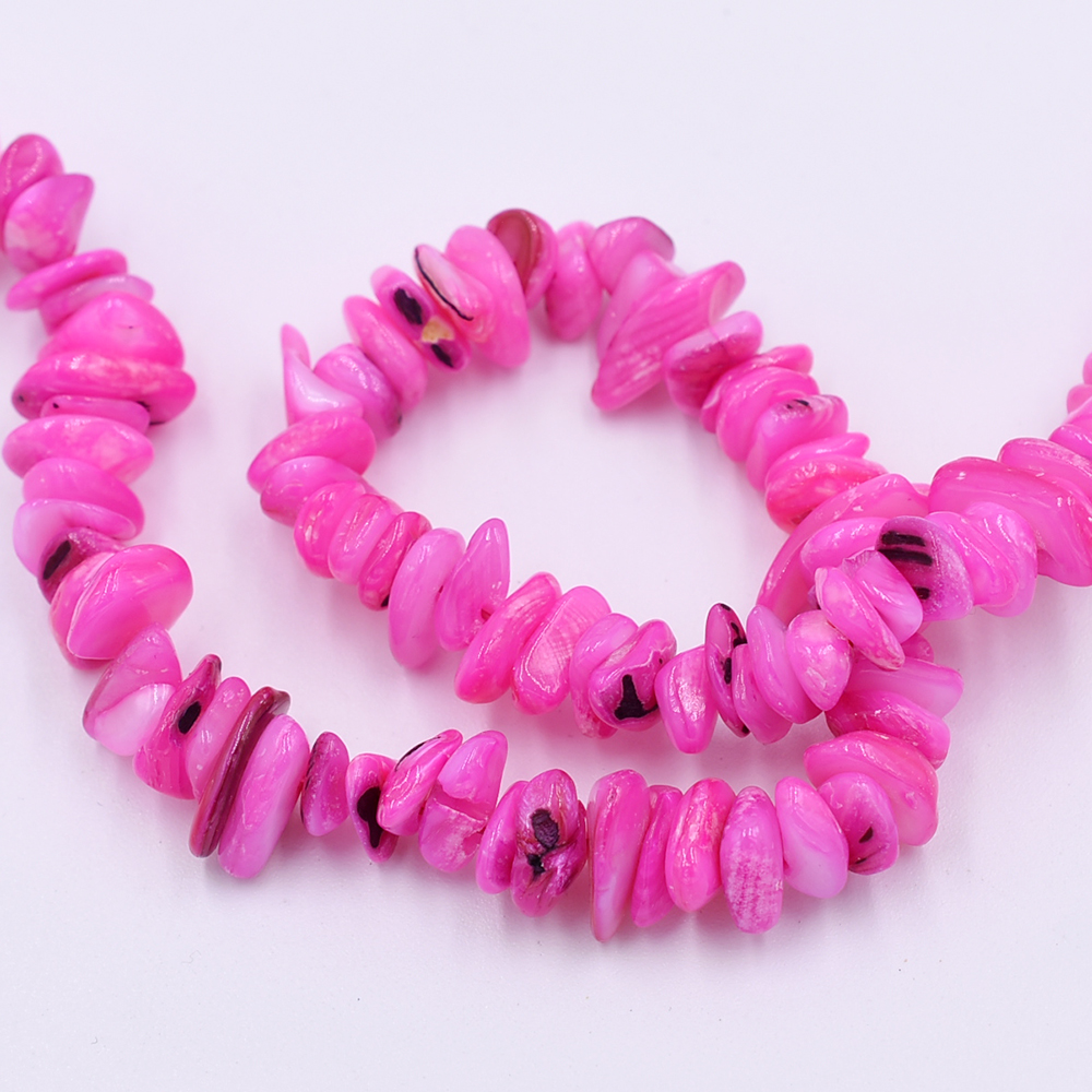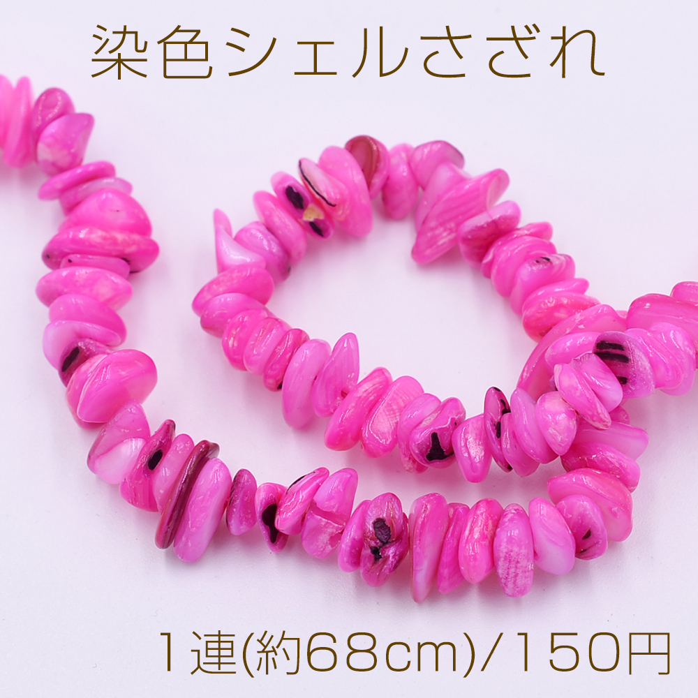 染色シェルさざれ 不規則型 6-17mm ローズピンク【1連(約68cm)】