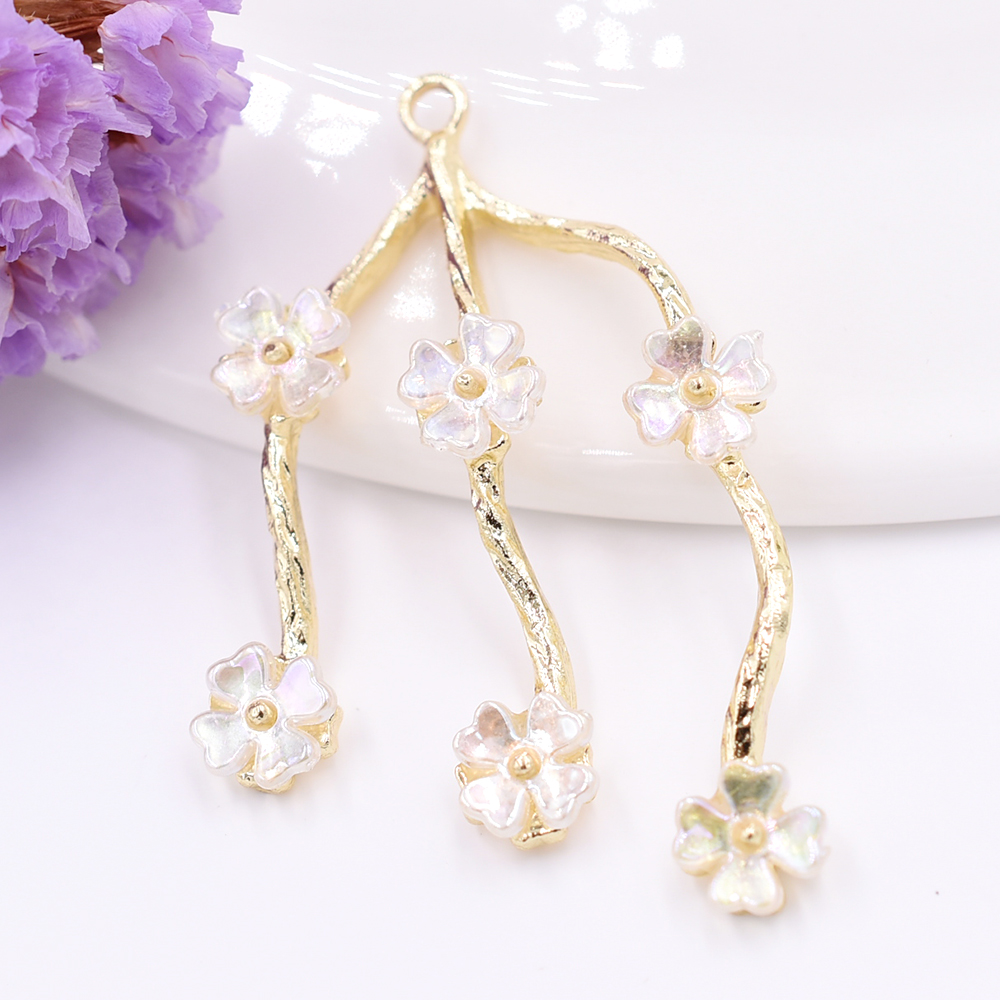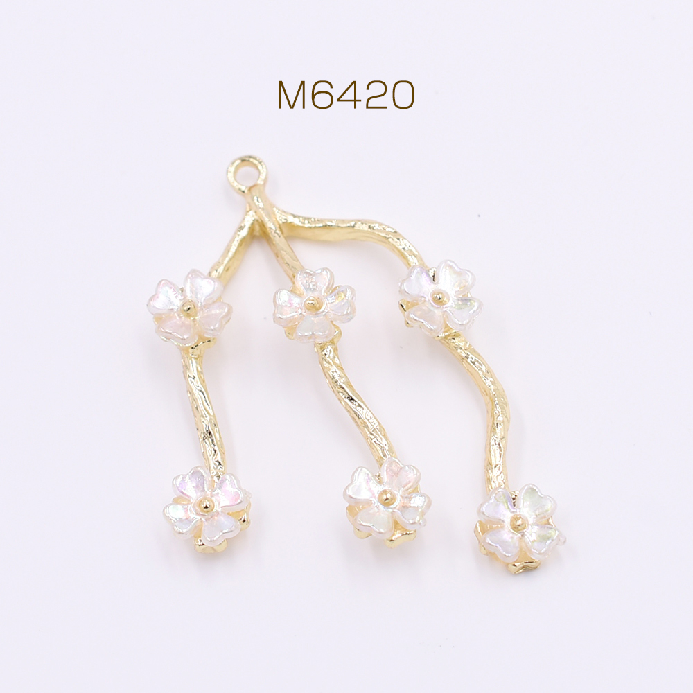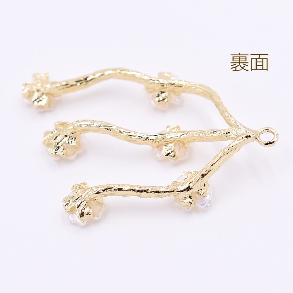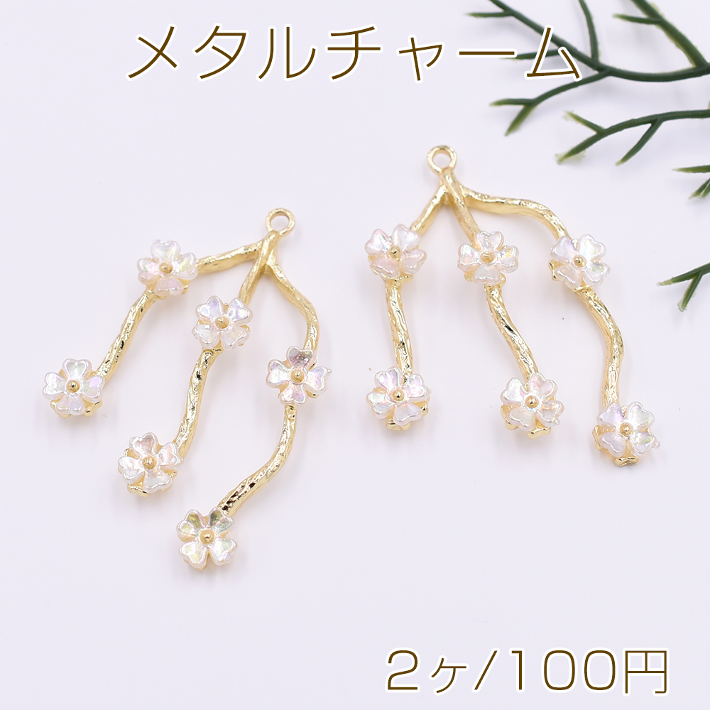 メタルチャーム 枝チャーム 樹脂フラワー付き 1カン 26×44mm ゴールド【2ヶ】
