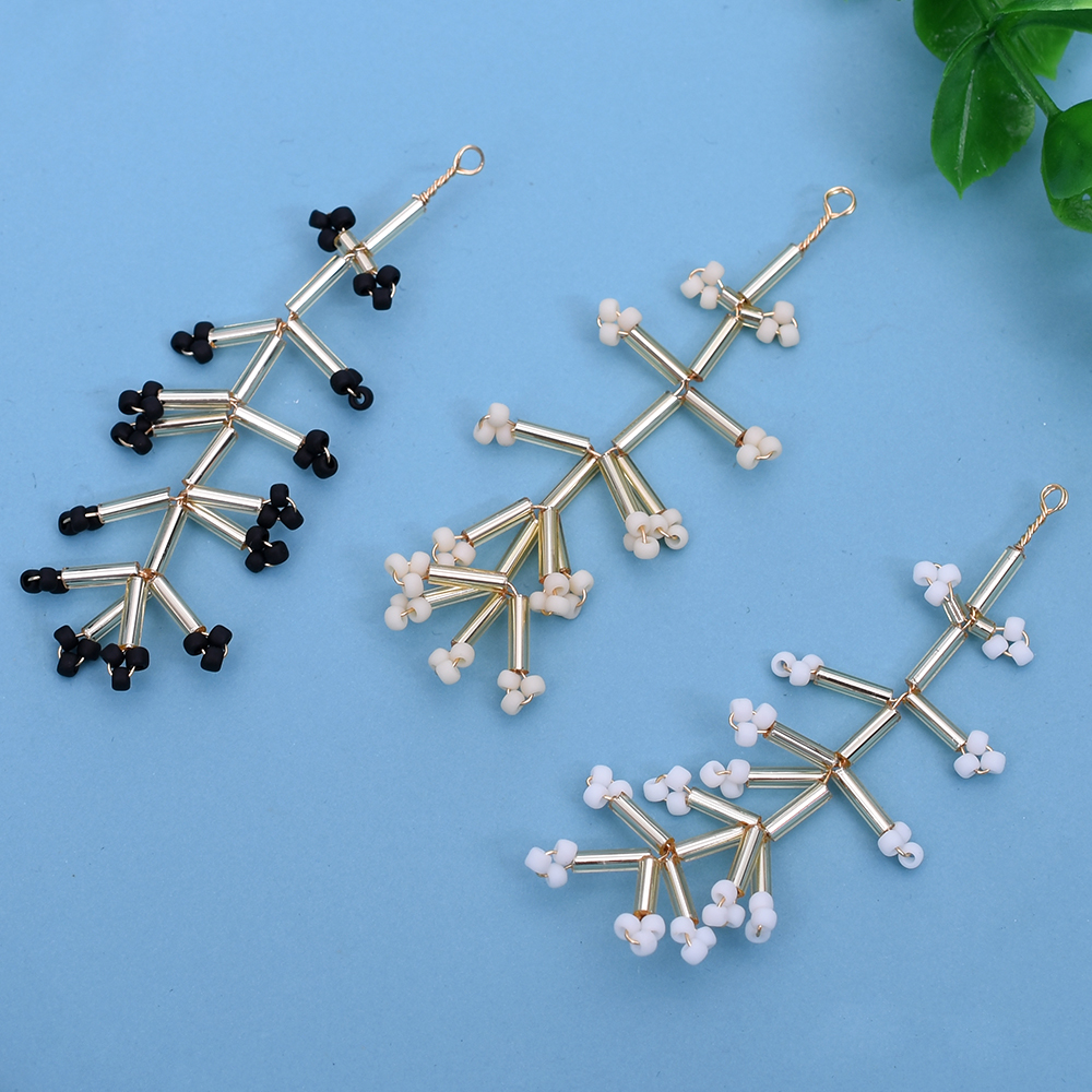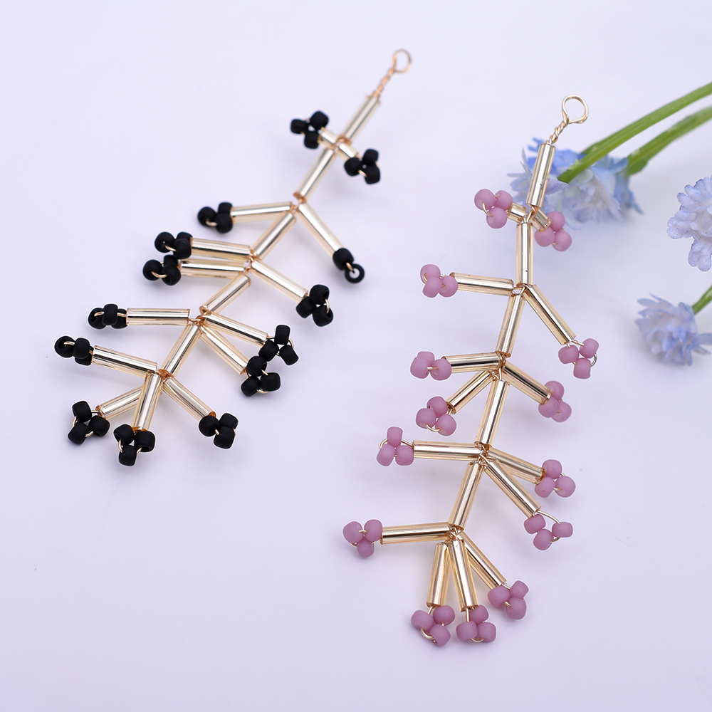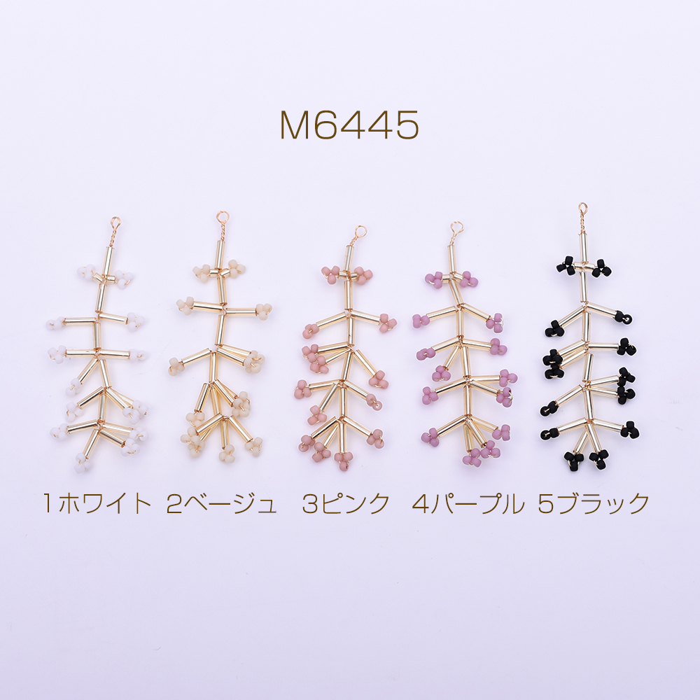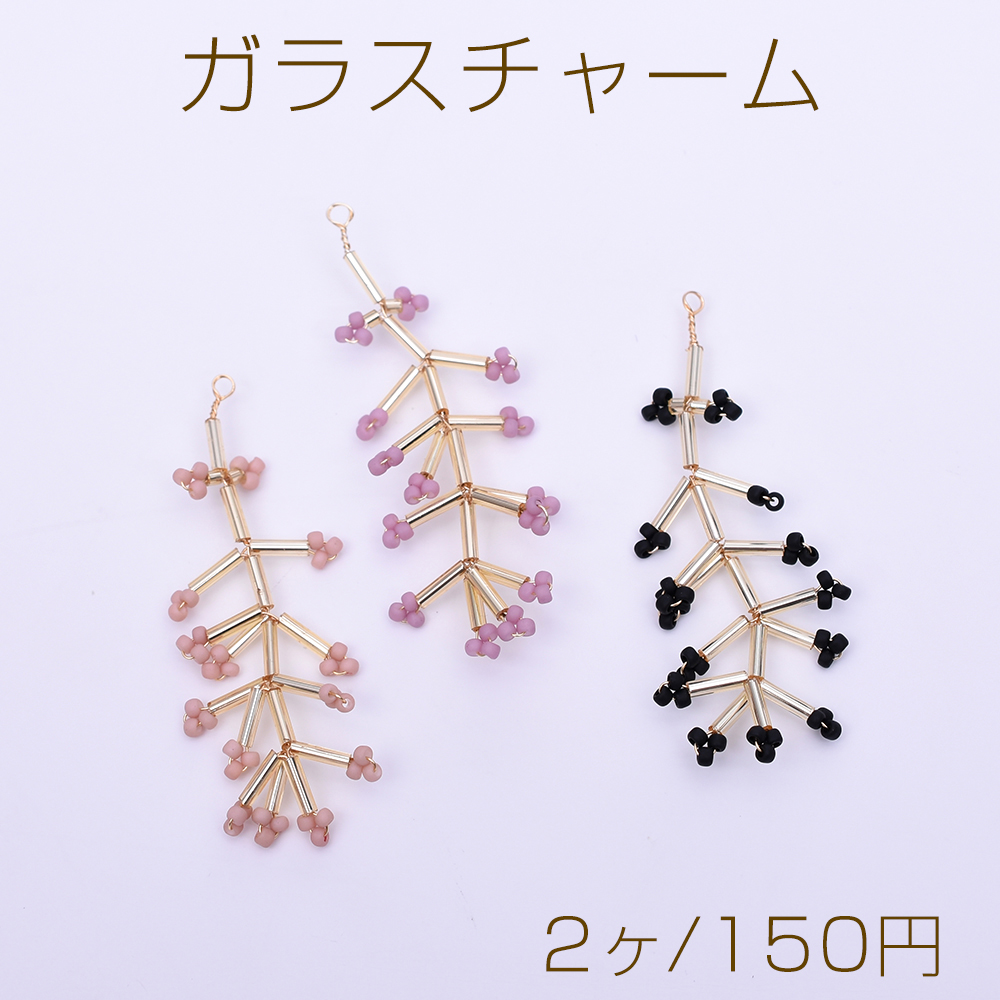 ガラスチャーム ワイヤービーズ 花枝チャーム ゴールド【2ヶ】