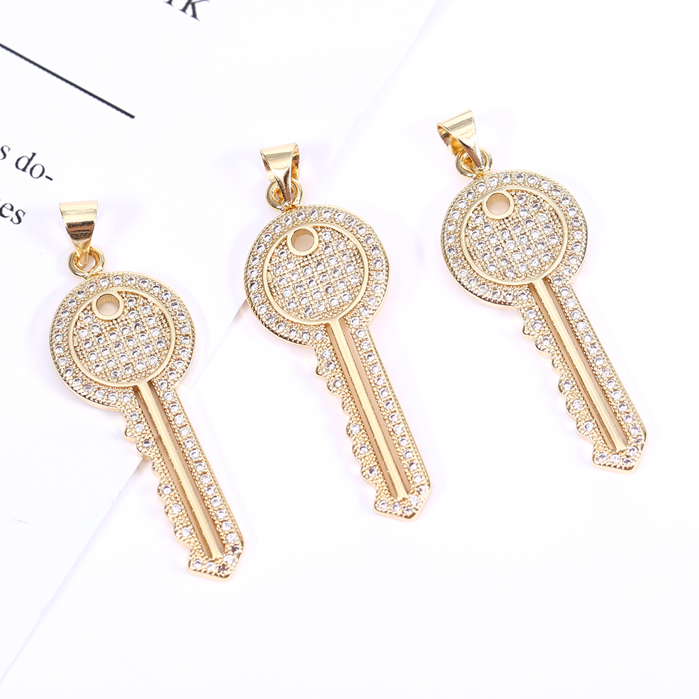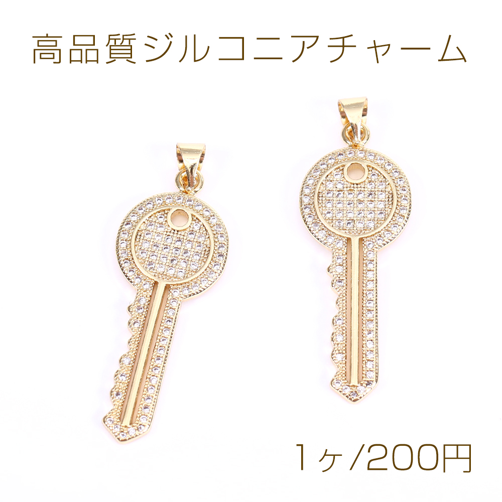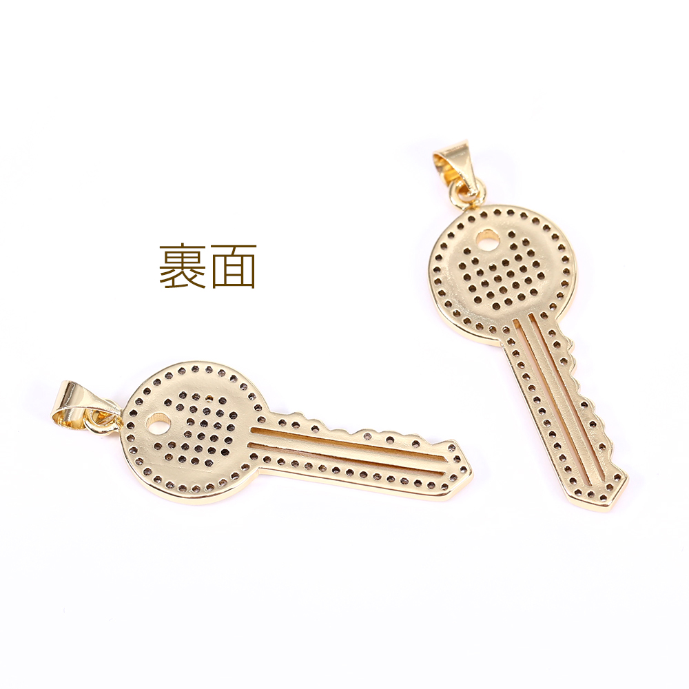 高品質ジルコニアチャーム キーA 13.5×36mm ゴールド【1ヶ】