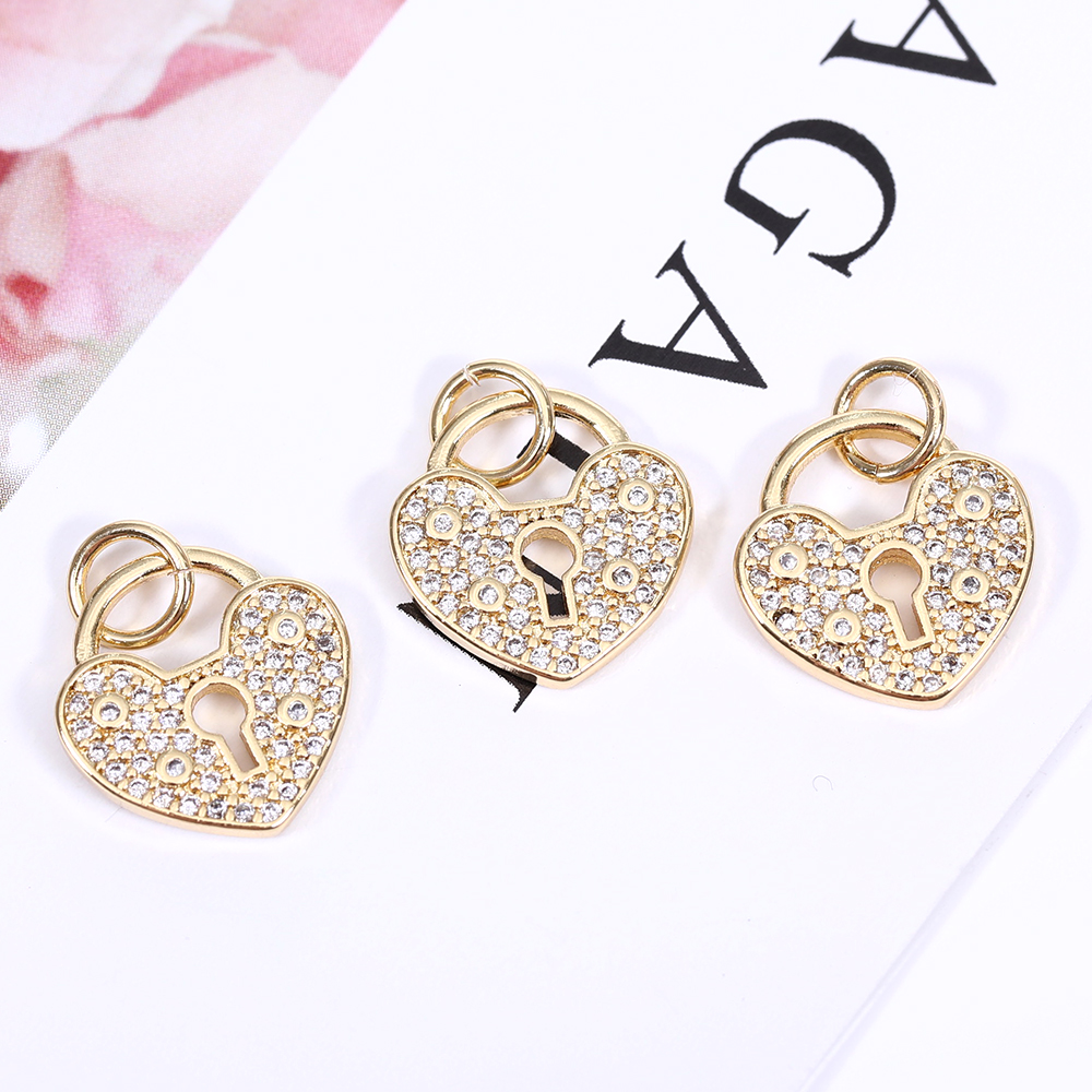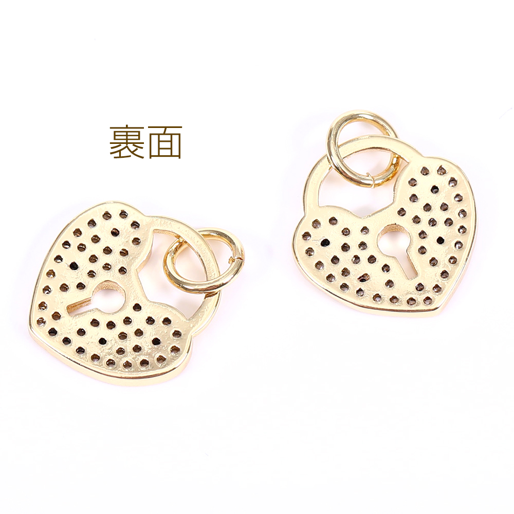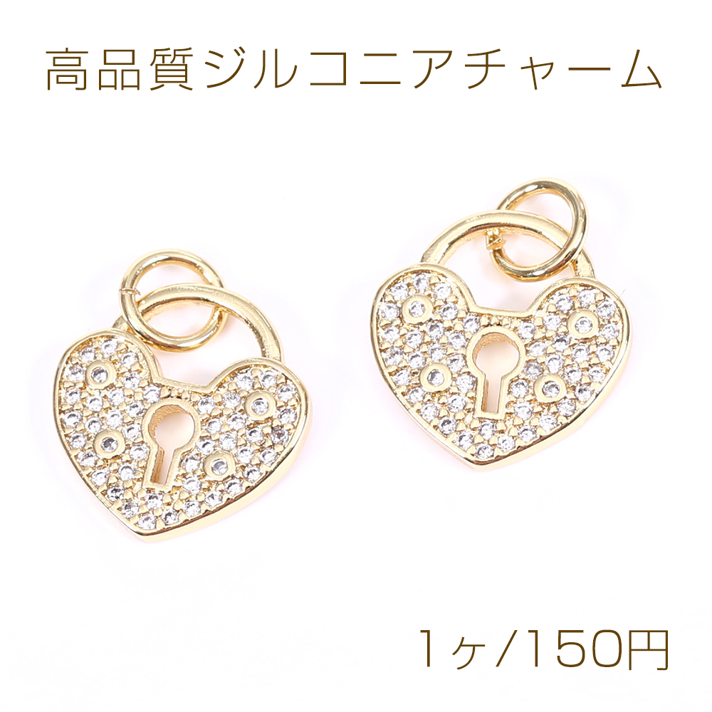 高品質ジルコニアチャーム ハートロックA 14×14.5mm ゴールド【1ヶ】