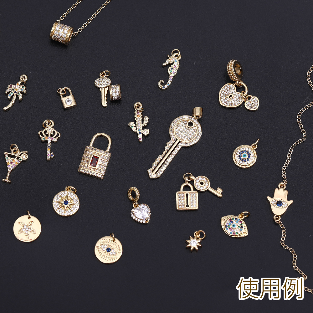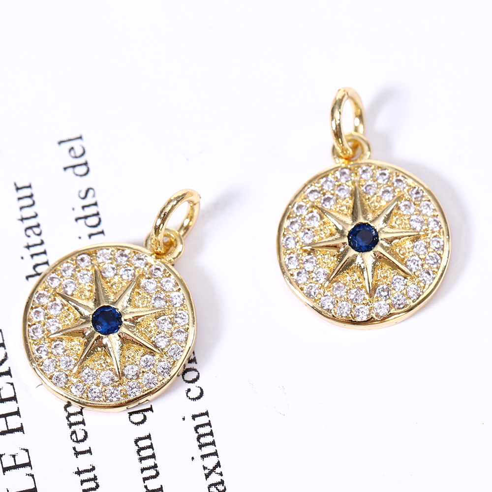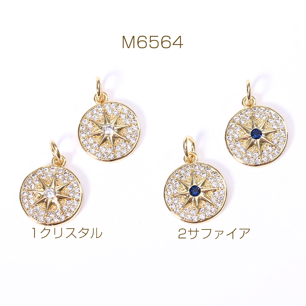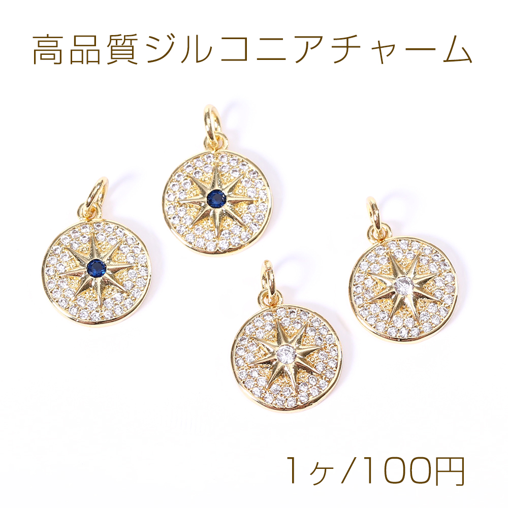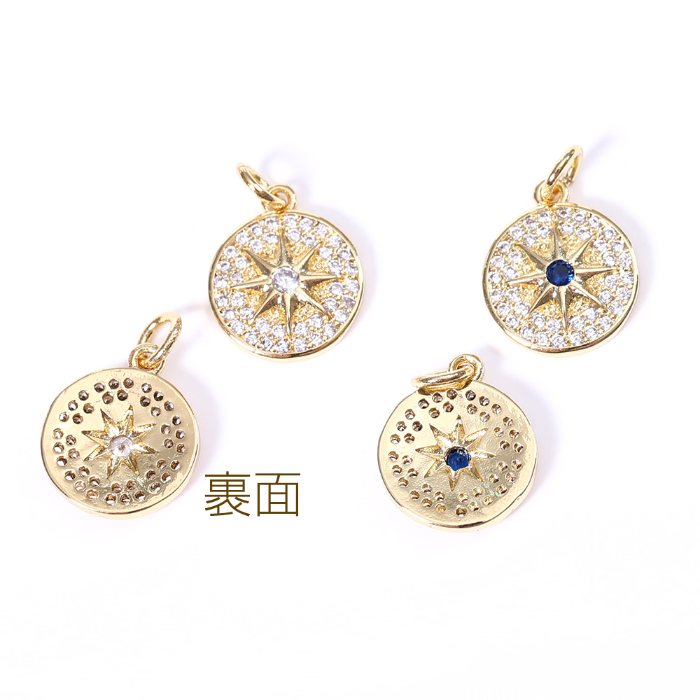 高品質ジルコニアチャーム プレート 円形 フラッシュスター ゴールド【1ヶ】