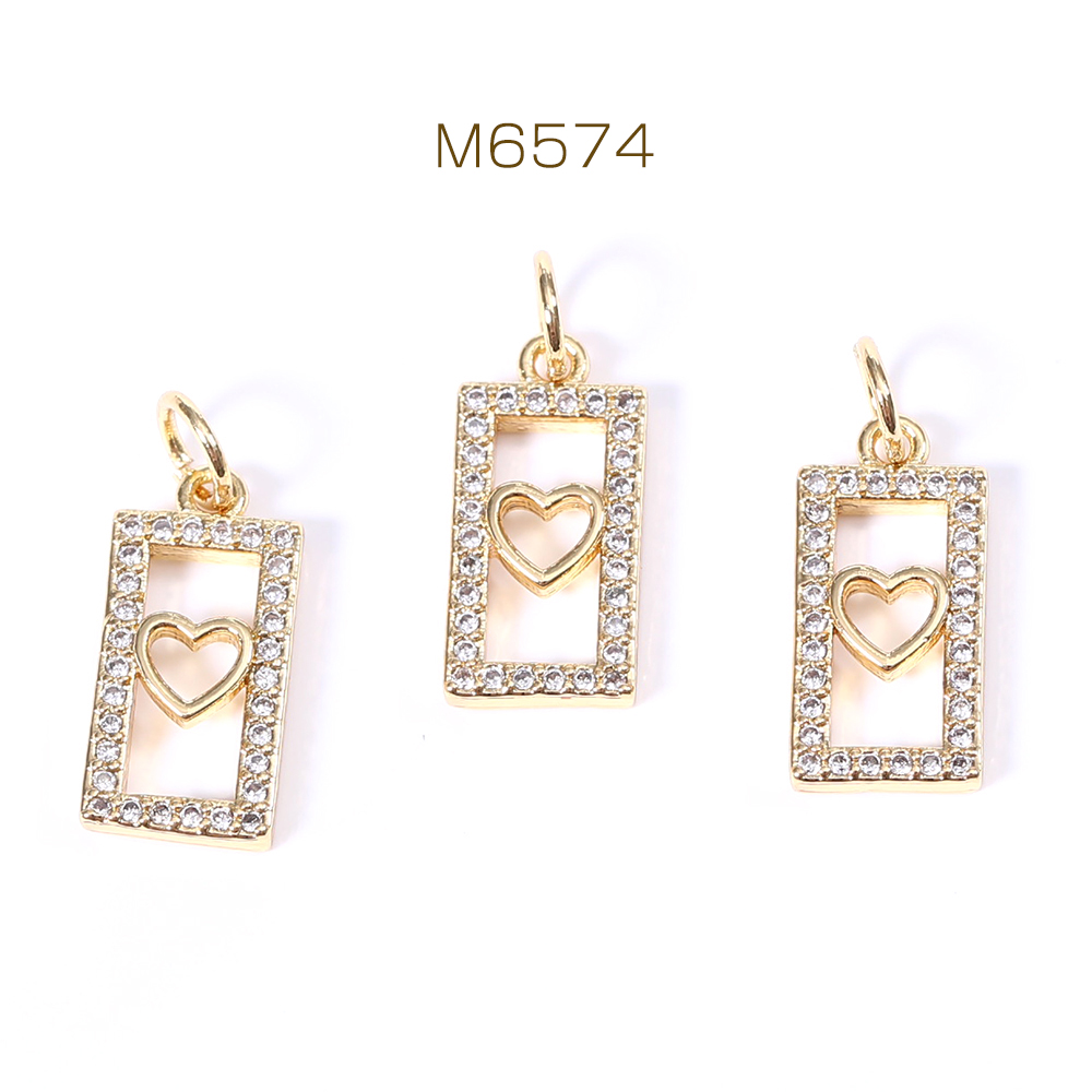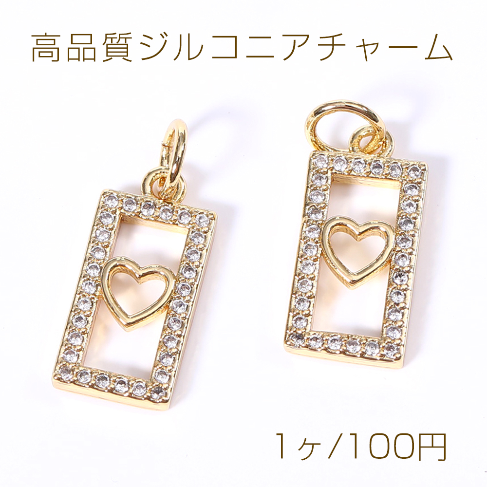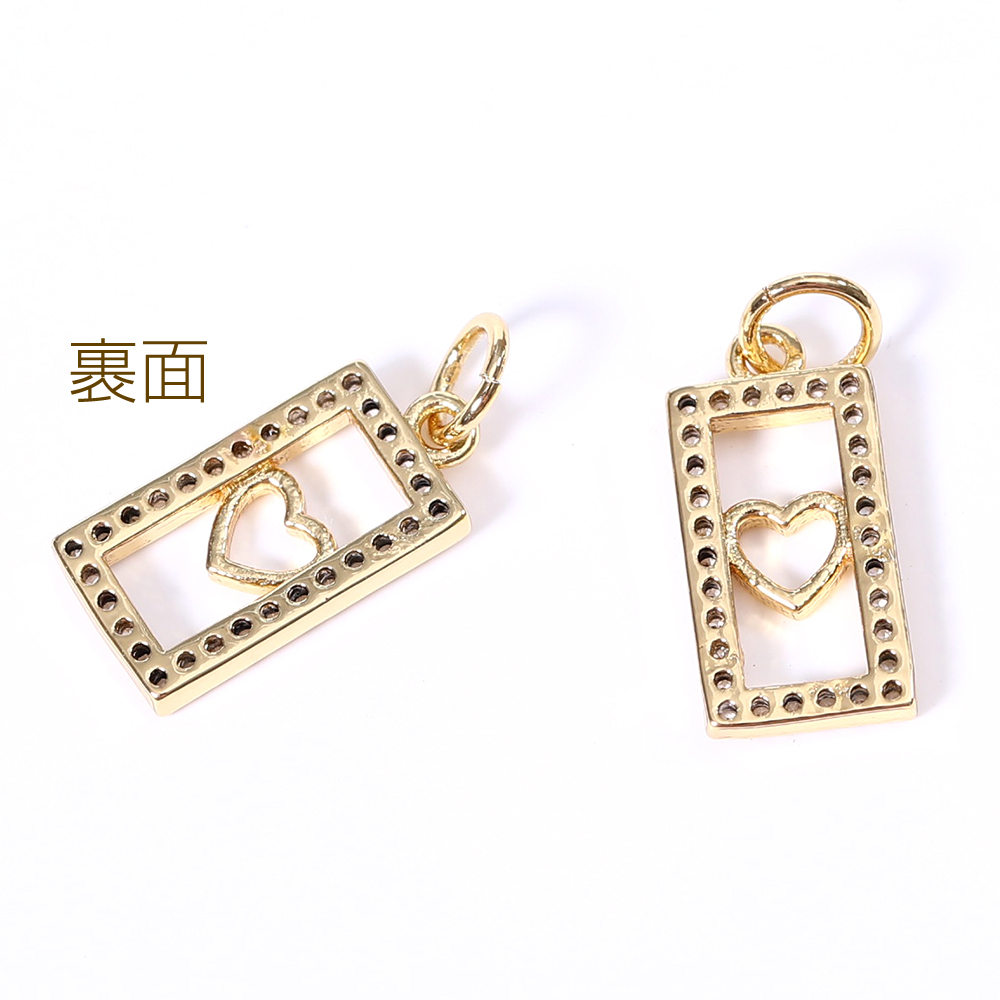 高品質ジルコニアチャーム 長方形とハート 7×15mm ゴールド【1ヶ】