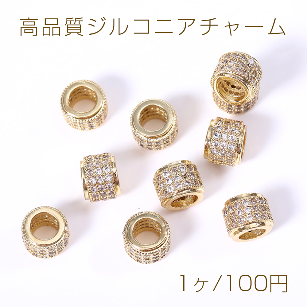 高品質ジルコニアチャーム 円柱型 5.5×7mm ゴールド【1ヶ】