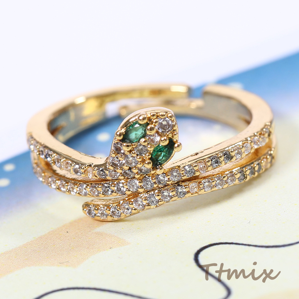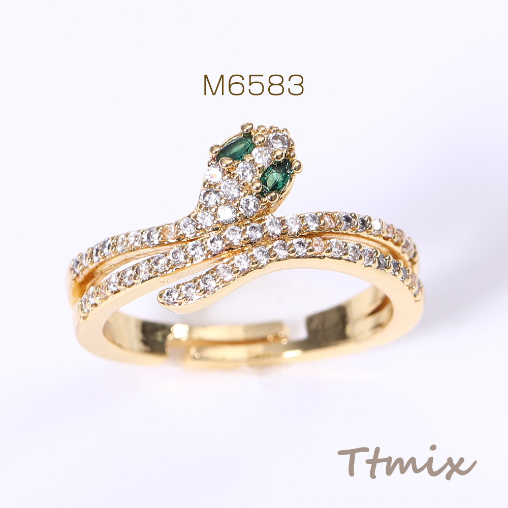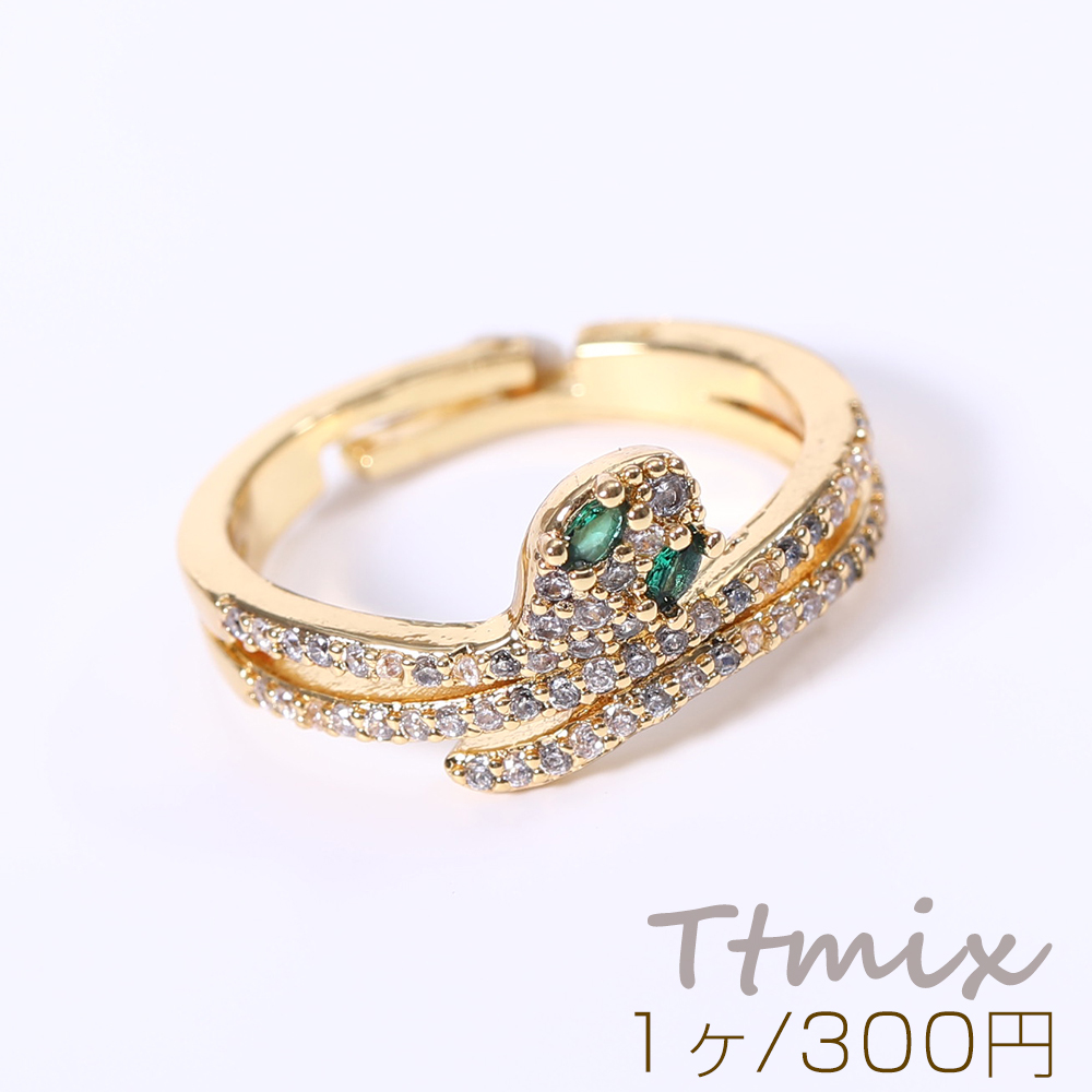 高品質ジルコニアリング 指輪 ヘビ型 幅約10mm ゴールド【1ヶ】
