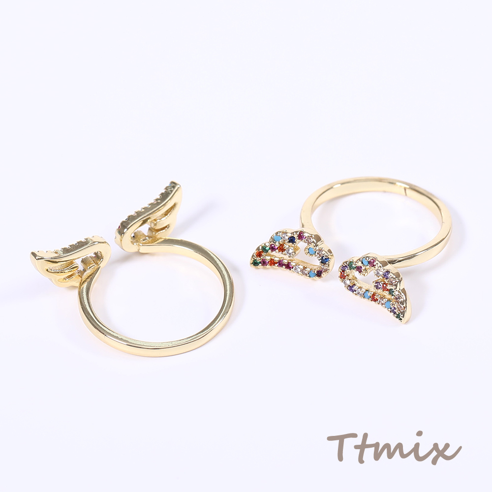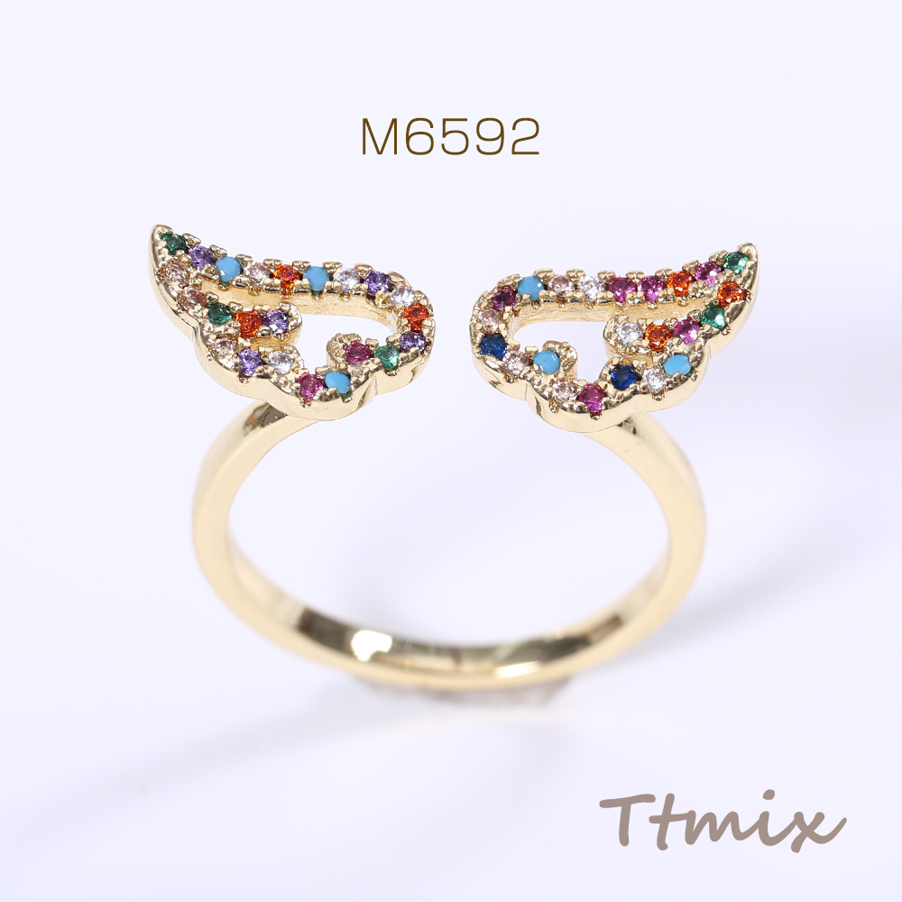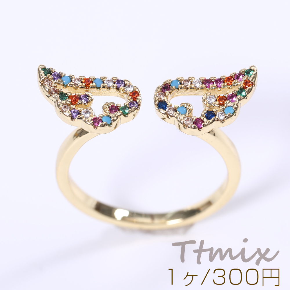 高品質ジルコニアリング 指輪 天使の羽 幅約6.5mm ゴールド【1ヶ】