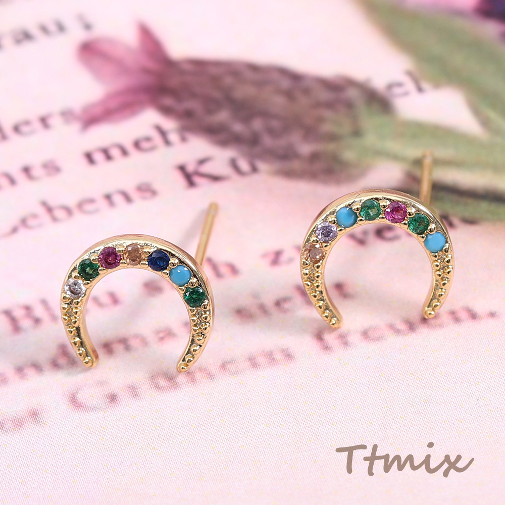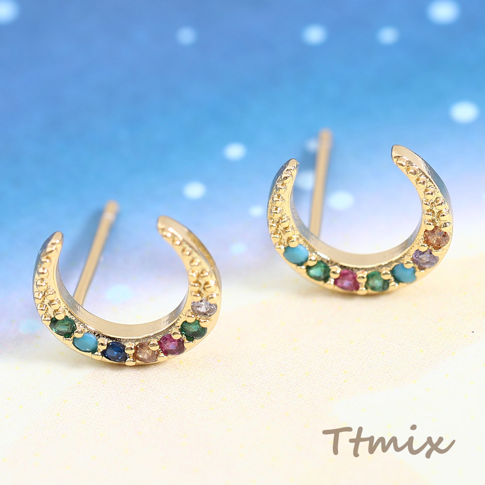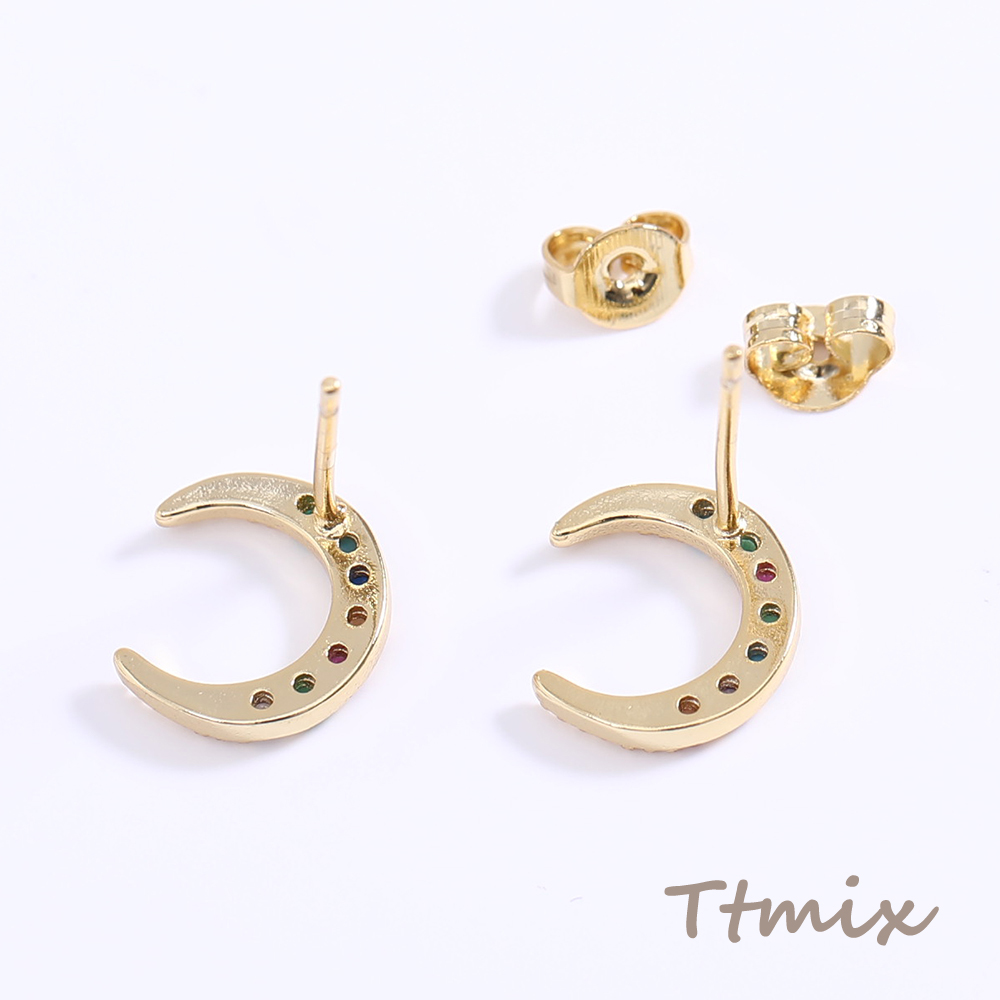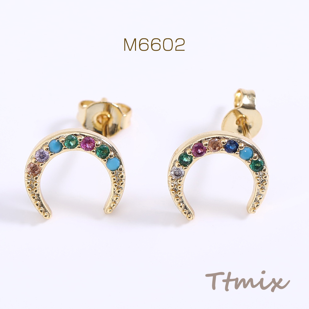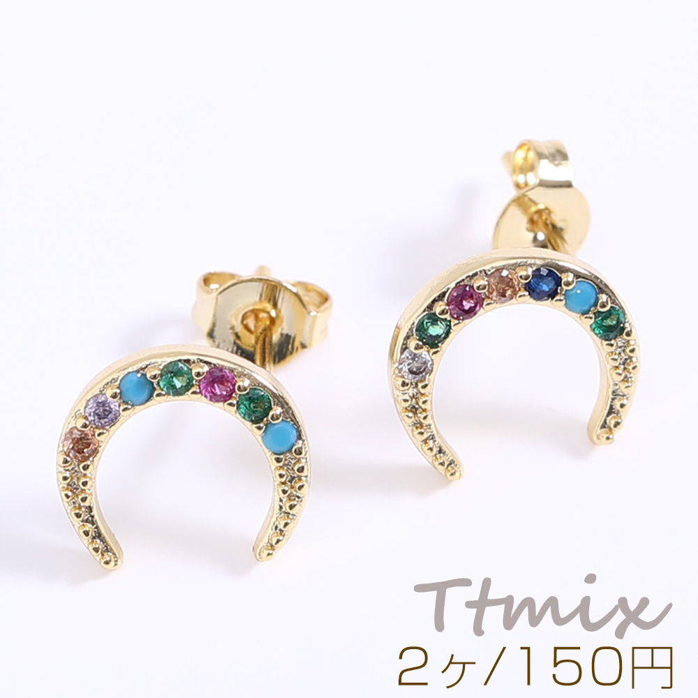 高品質ジルコニアピアス 月型 9.5×10.5mm ゴールド【2ヶ】
