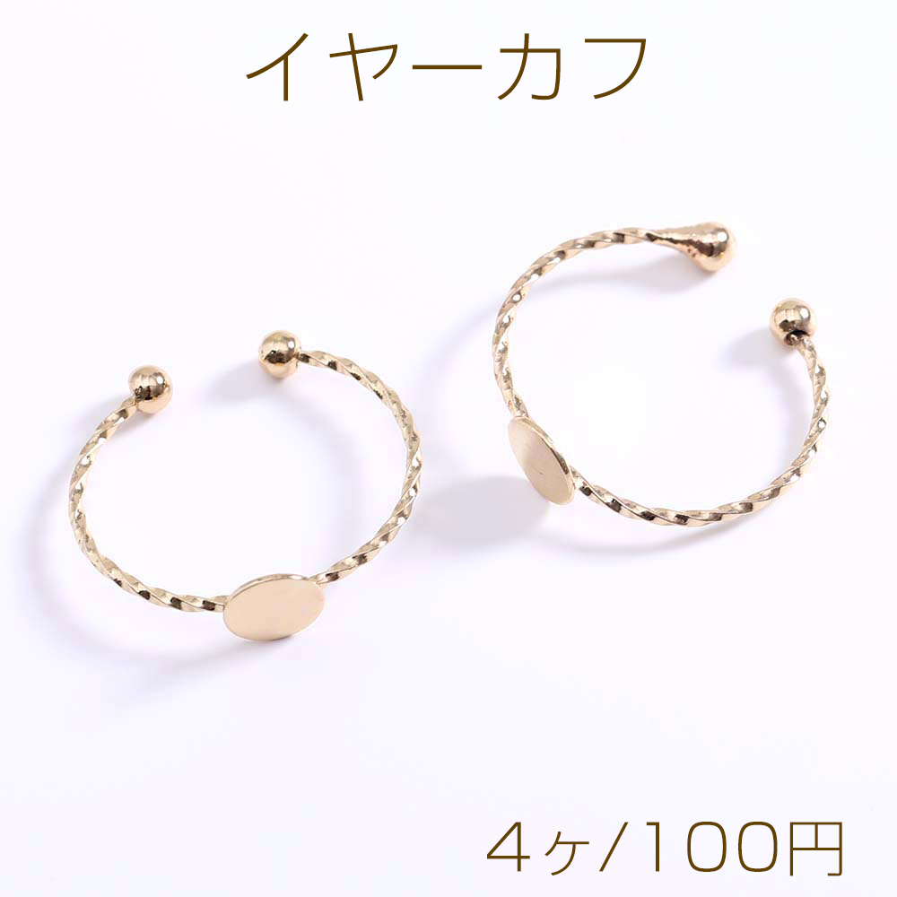 イヤーカフ ツイストフープ 丸皿 6mm ゴールド【4ヶ】