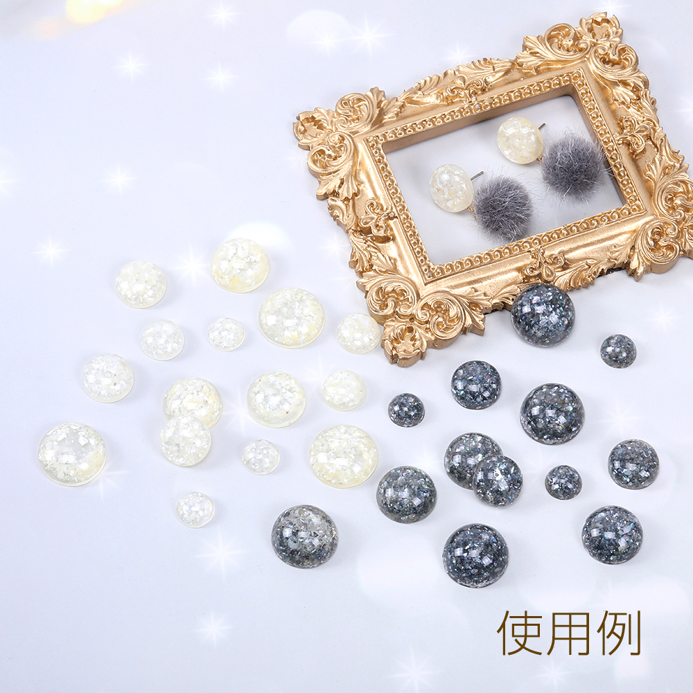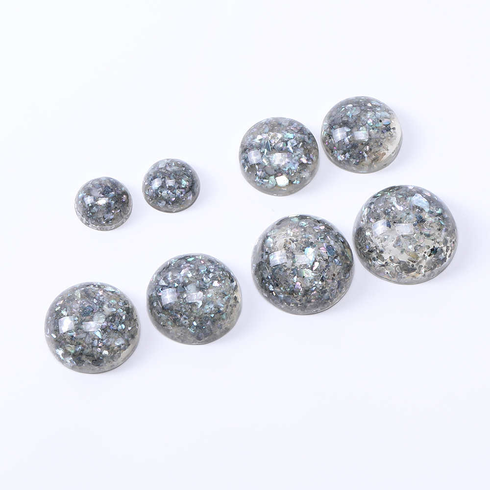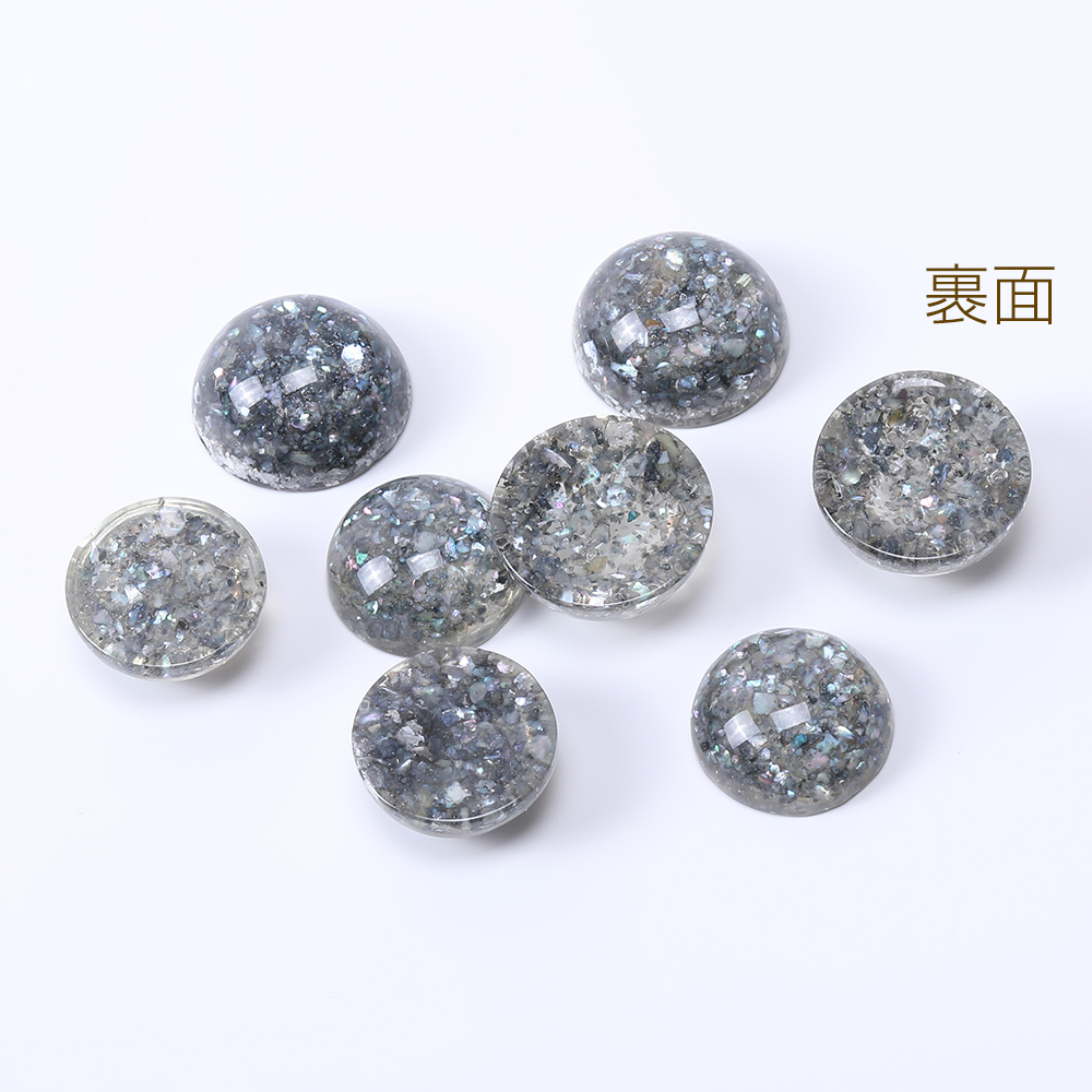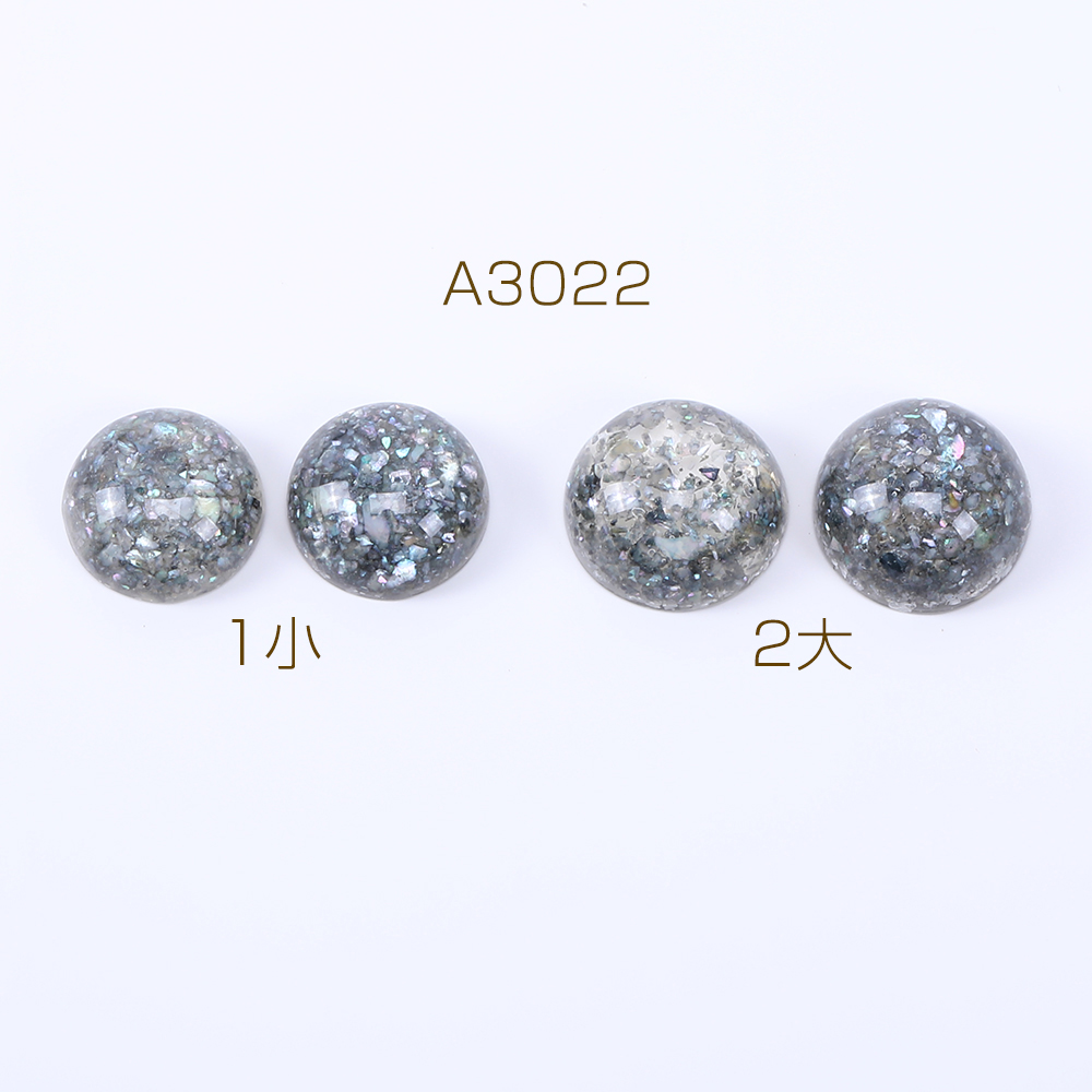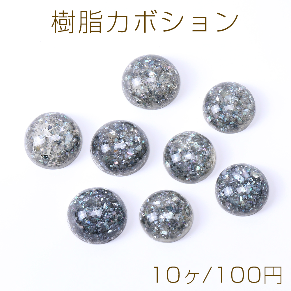樹脂カボション 半円 16mm/18mm クラッシュシェル入り グレー【10ヶ】