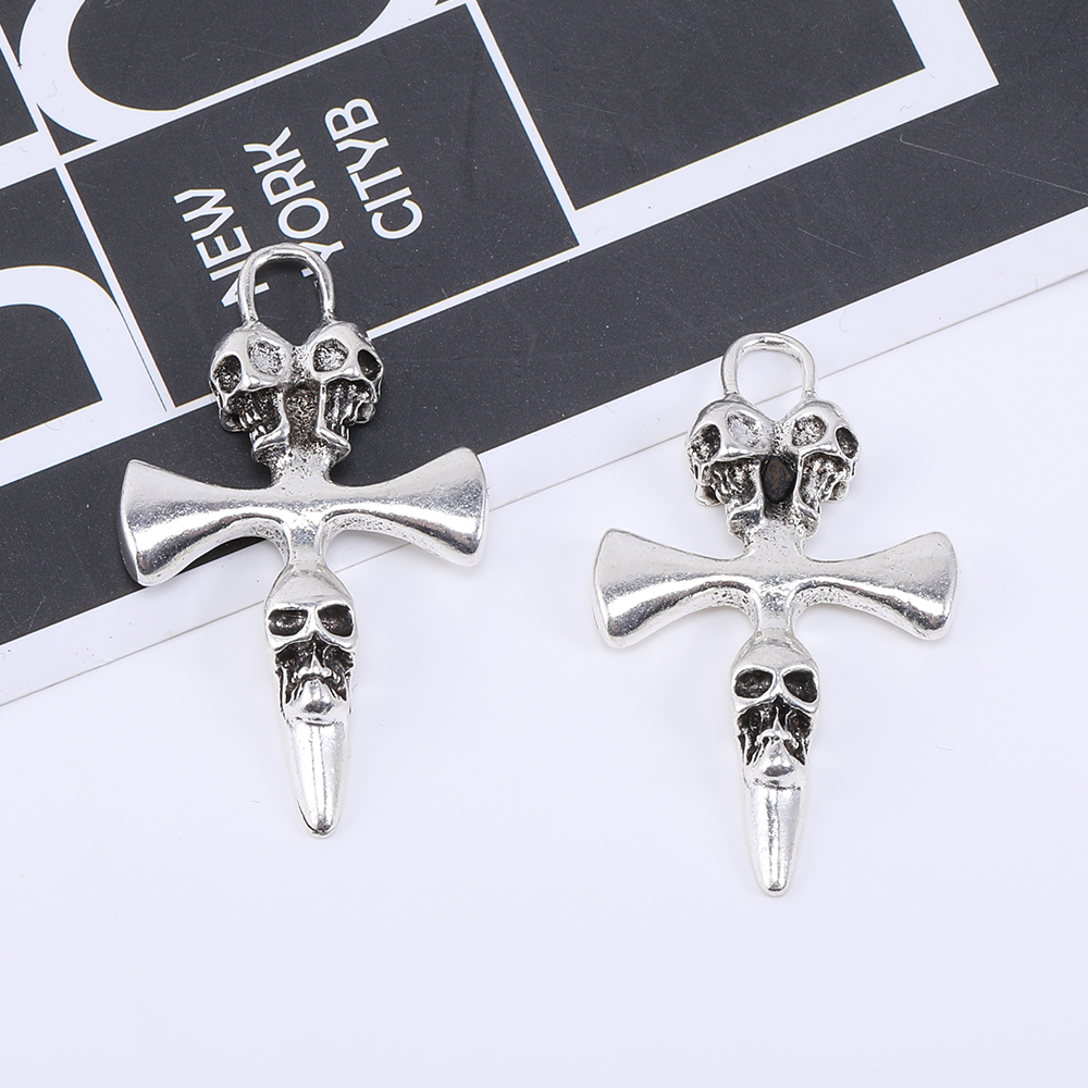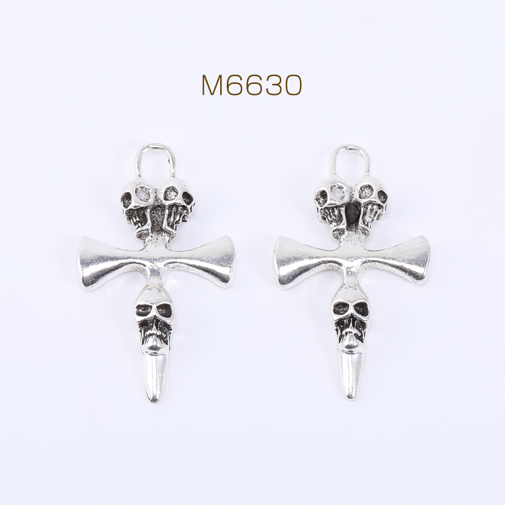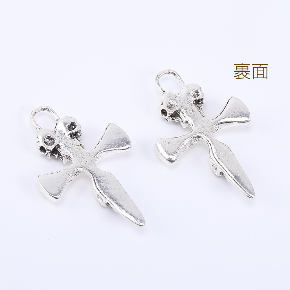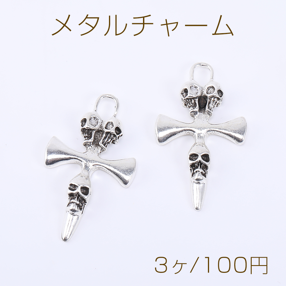 メタルチャーム スカルとクロス 1カン 27×46mm アンティークシルバー【3ヶ】